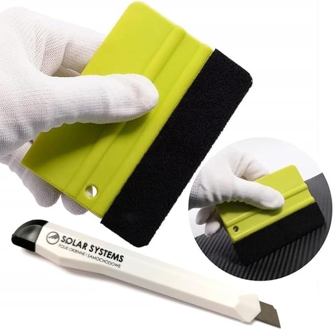 Самозалепващо автомобилно фолио Solar Systems 3M WRAP 2080 - Лента за демонтиране + Ракела и нож - Тунинг на автомобили - Автомобилно фолио, гланцово черно, 5 см x 10 м