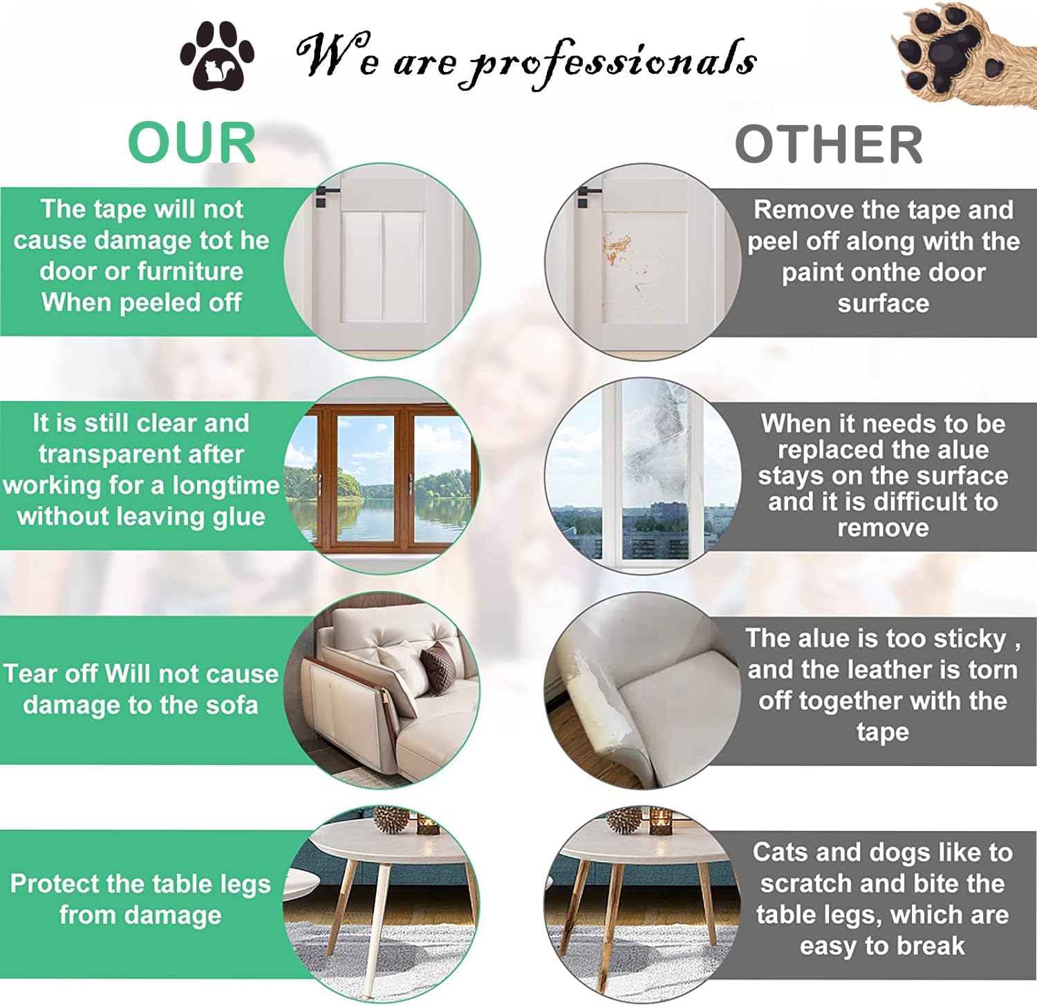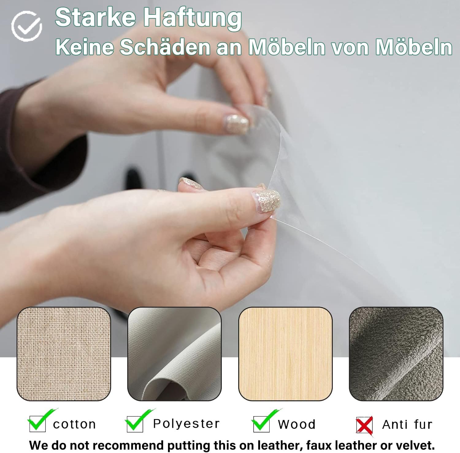 • Може да се изреже по размер: можете да изрежете фолиото против надраскване „котка“ по ваш избор за монтаж върху диван, маса, шкаф, стол или други мебели. Защитата от надраскване на диван „котка“ може да отговори на вашите различни нужди. Забележка: Силно се препоръчва да тествате къса лента в малък ъгъл на повърхността, за да проверите как реагира мебелите, преди да поставите лентата върху цялата мебел.