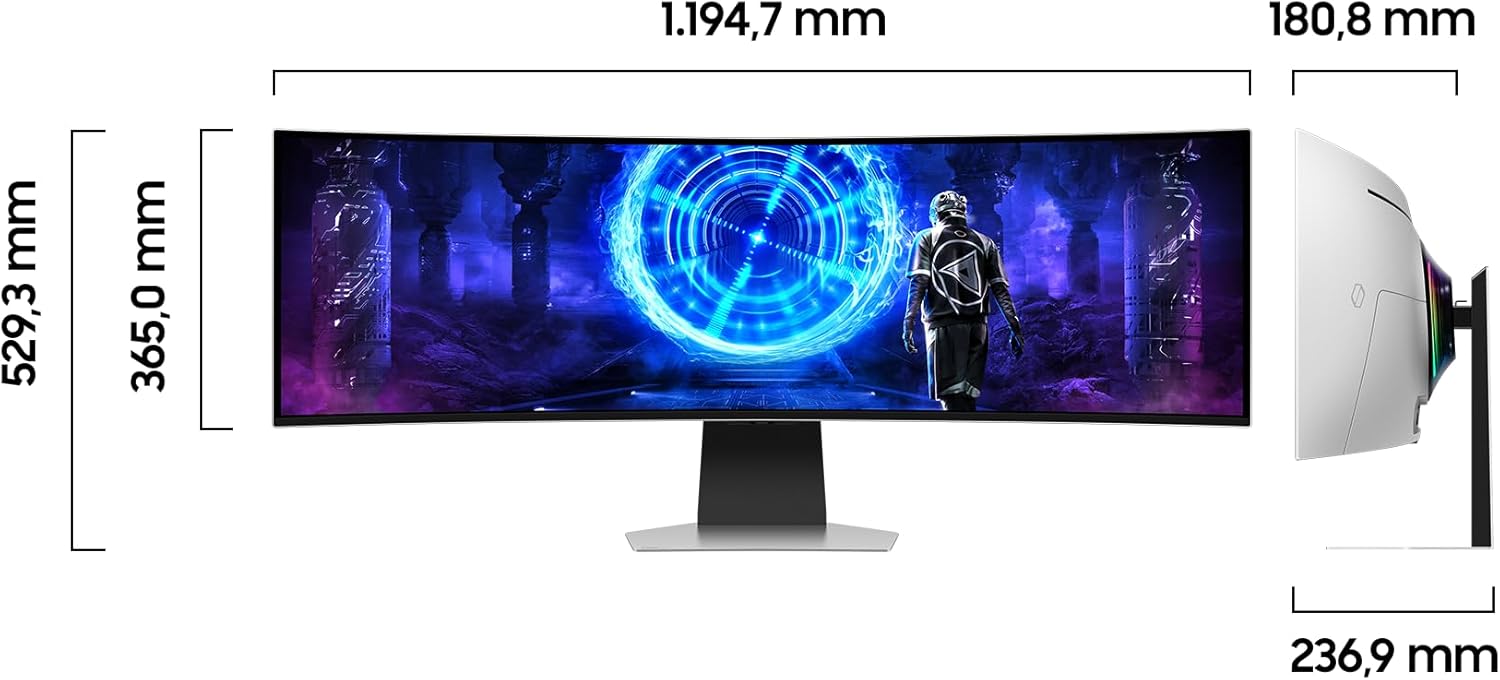 • Действие от реалния живот на по-широк екран: OLED технология в двоен QHD формат с резолюция 5120 x 1440 за игри на следващо ниво с ясни, завладяващи изображения