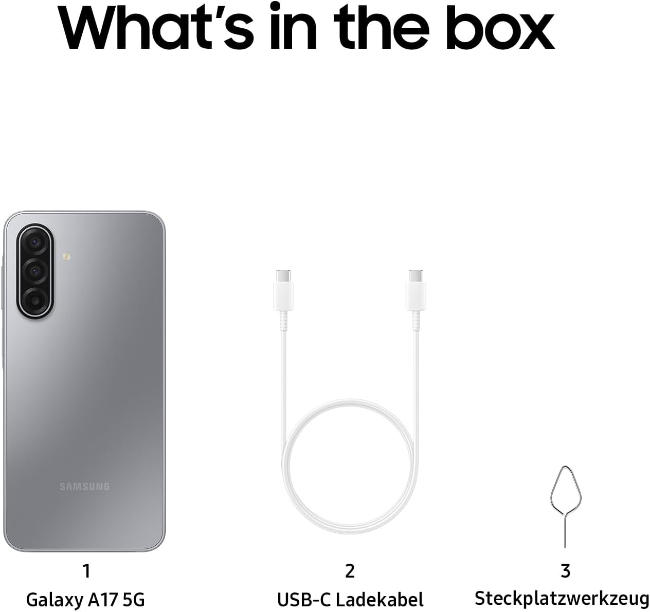 Samsung Galaxy A17 5G AI смартфон, AI телефон с Android, тънка рамка 7.5 мм, 50 MP камера, 256 GB памет, 8 GB RAM, батерия 5000 mAh, сив