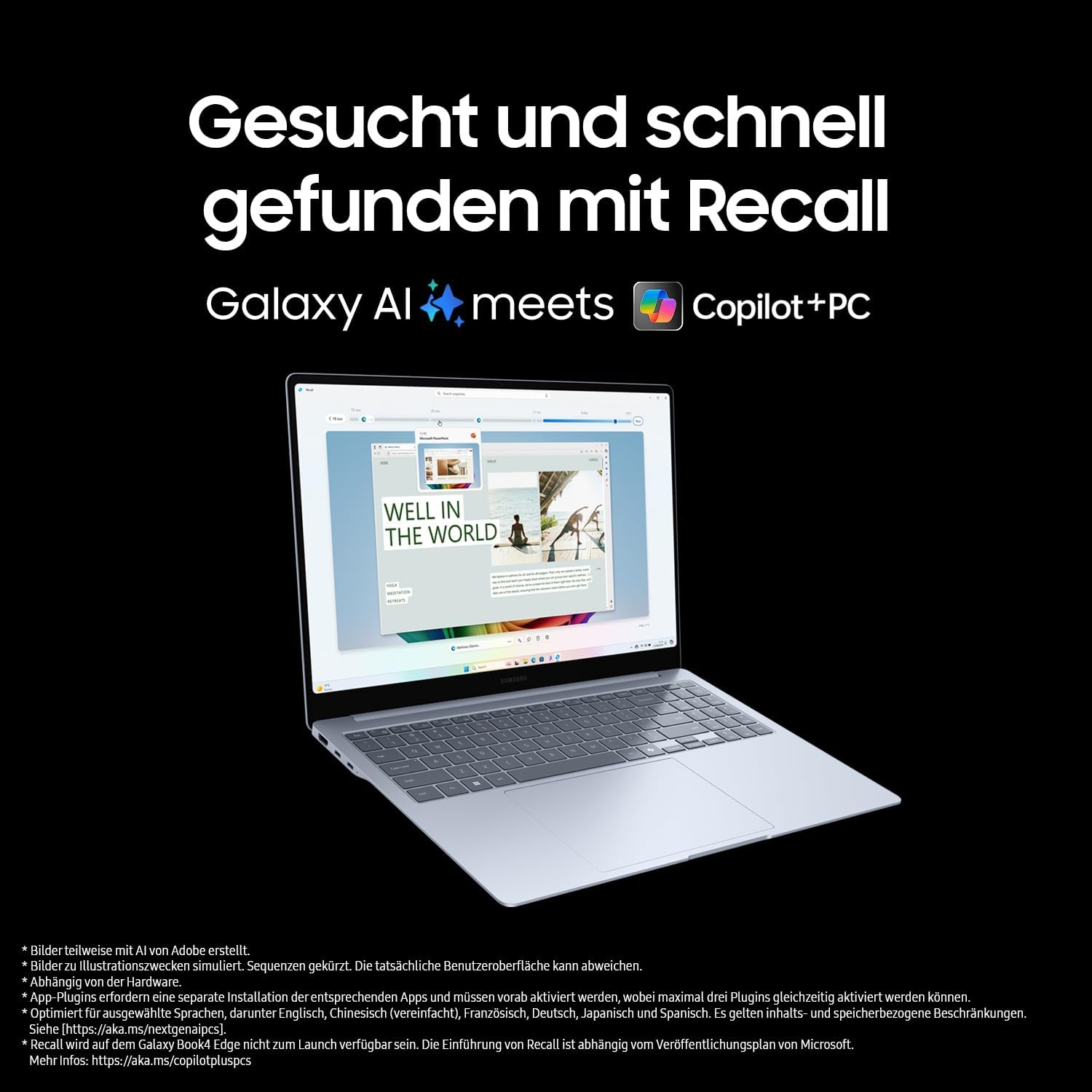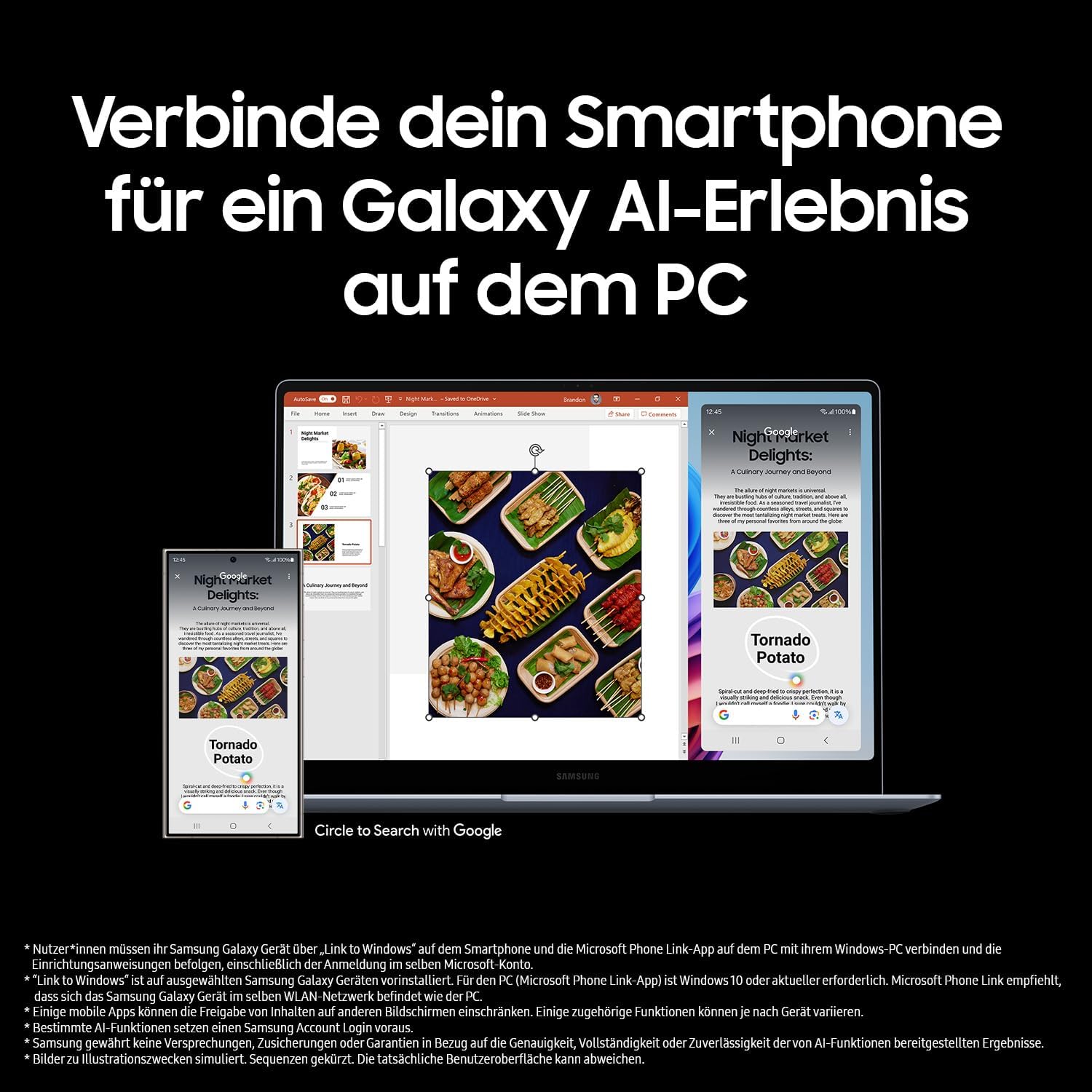 • Galaxy AI на устройството: Copilot с Recall за бързо преглеждане на историята на вашия компютър² ³ ⁴, интелигентно използване на функциите с изкуствен интелект на телефона ви на вашия компютър⁵ ⁶ ⁷, търсене с кръгове с Google, асистент за бележки, асистент за чат и много други.⁸ ⁹