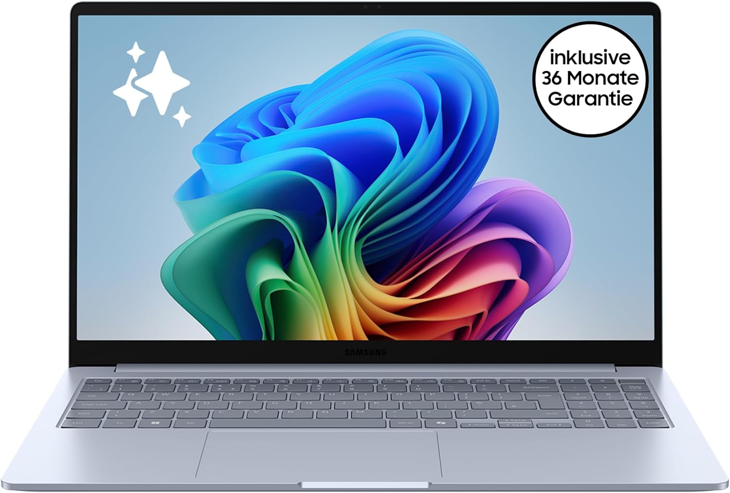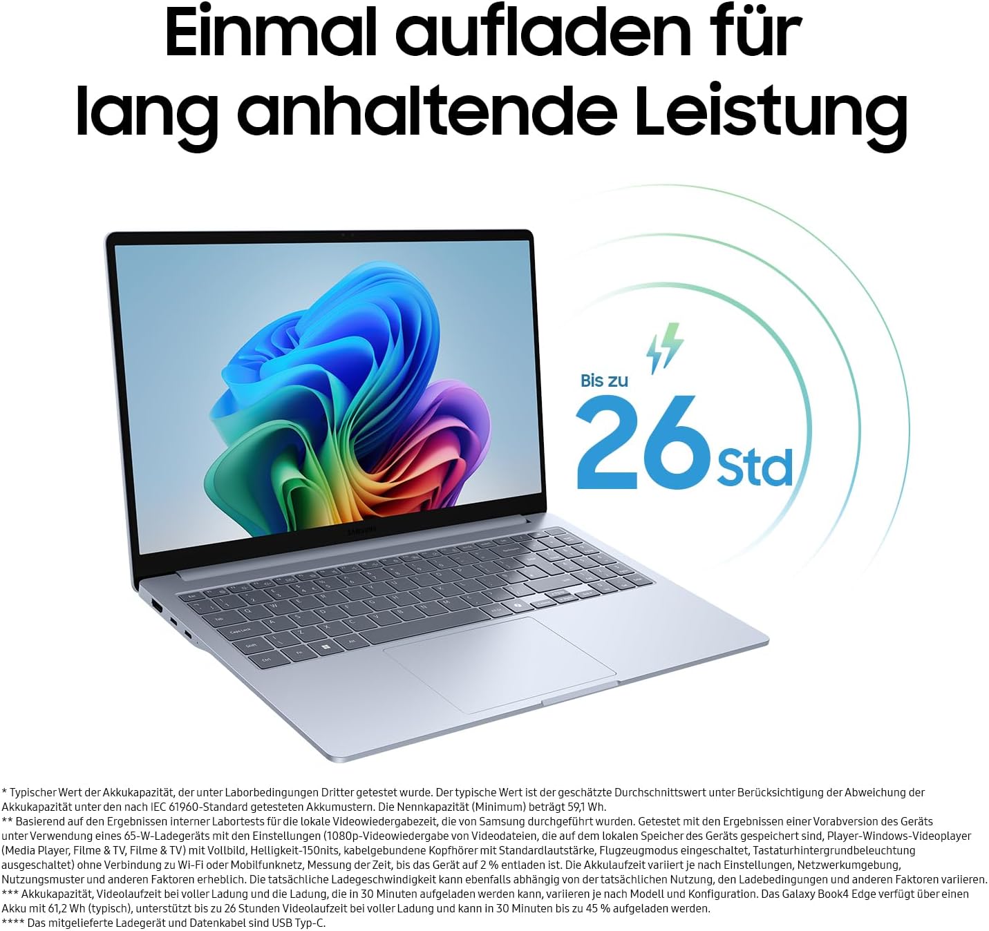 Samsung Galaxy Book4 Edge Galaxy AI лаптоп, 15.6-инчов дисплей, 16GB RAM, процесор Snapdragon X Plus, 256GB място за съхранение на лаптоп, Copilot+ PC, сапфирено синьо, 3-годишна гаранция от производителя, Windows 11 Home