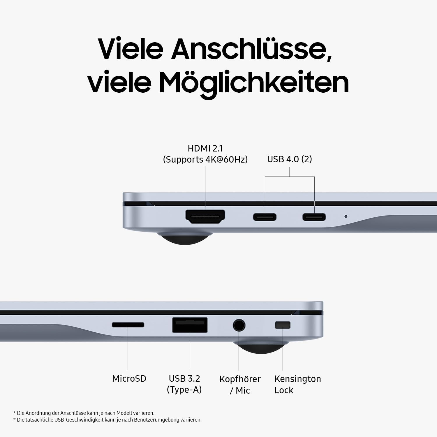 • Перфектен за в движение: Тънък, лек и удобен лаптоп Samsung с минималистичен дизайн¹⁰ - бърза, прецизна и ефективна работа¹¹ благодарение на процесора Snapdragon X Plus¹² и усъвършенствания NPU