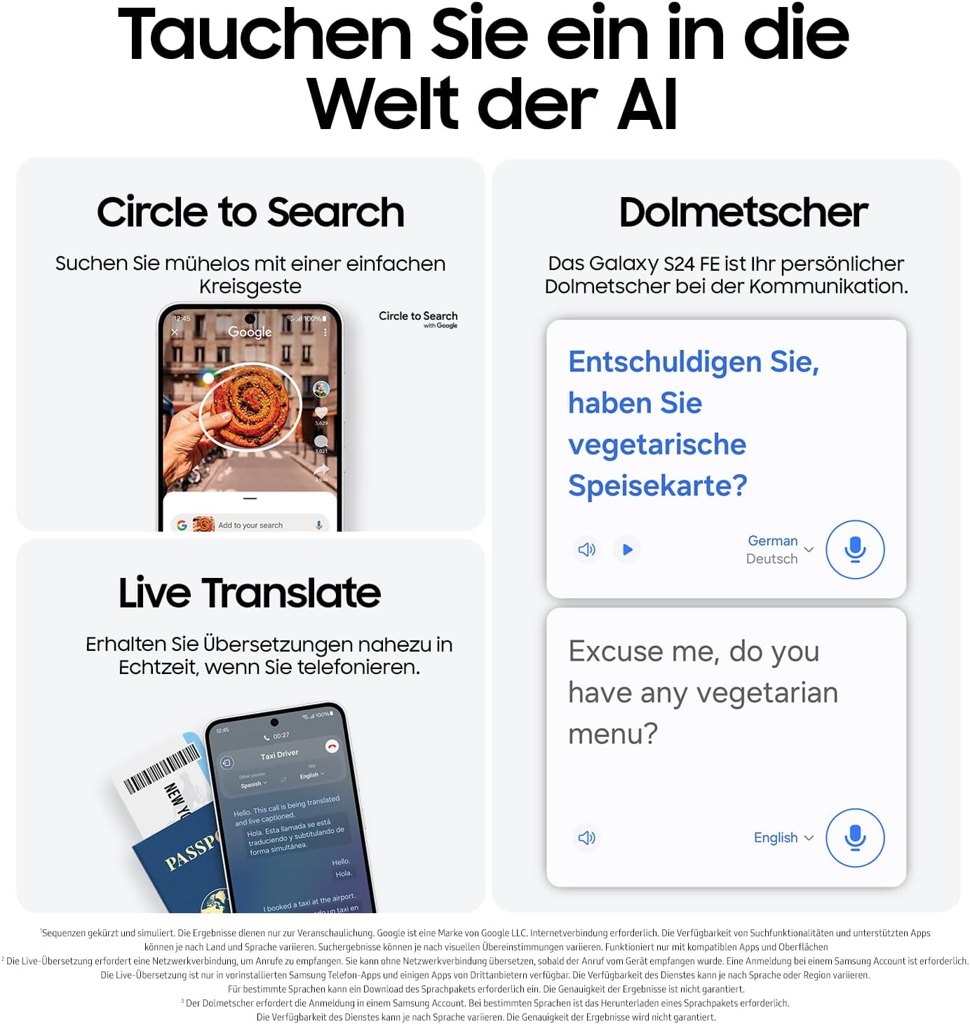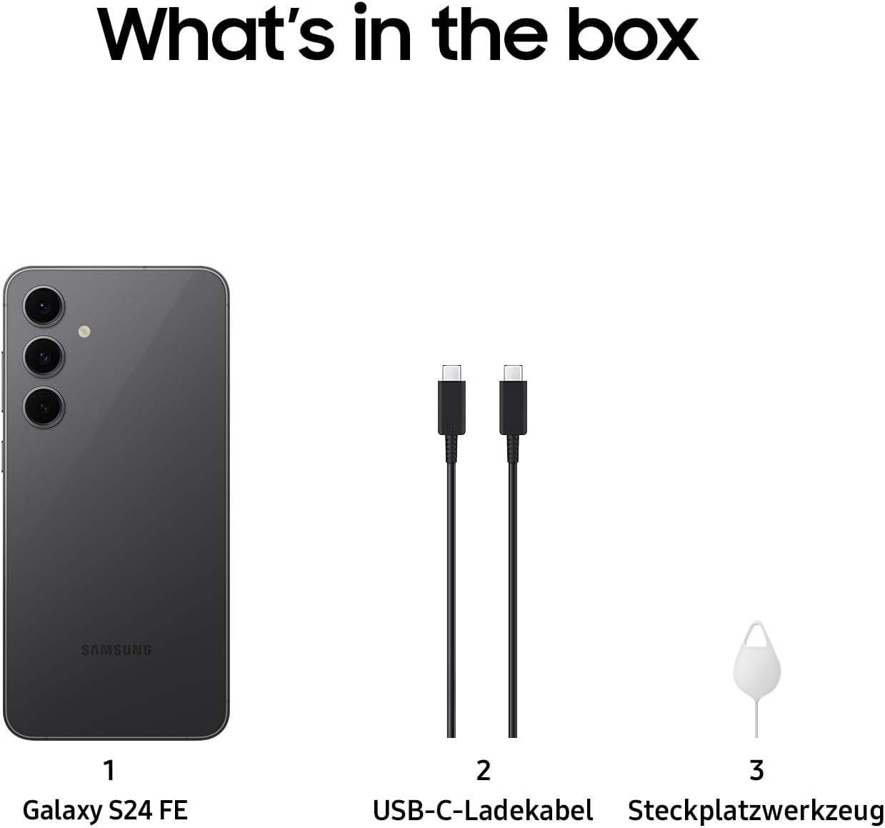 Samsung Galaxy S24 FE Enterprise Edition 5G смартфон с две SIM карти, RAM 8 GB / вътрешна памет 128, OLED дисплей 6,7 инча, 2340 x 1080 пиксела, 120 Hz, тройна камера 50 MP, 12,8 инча, предна камера 10 инча, графит