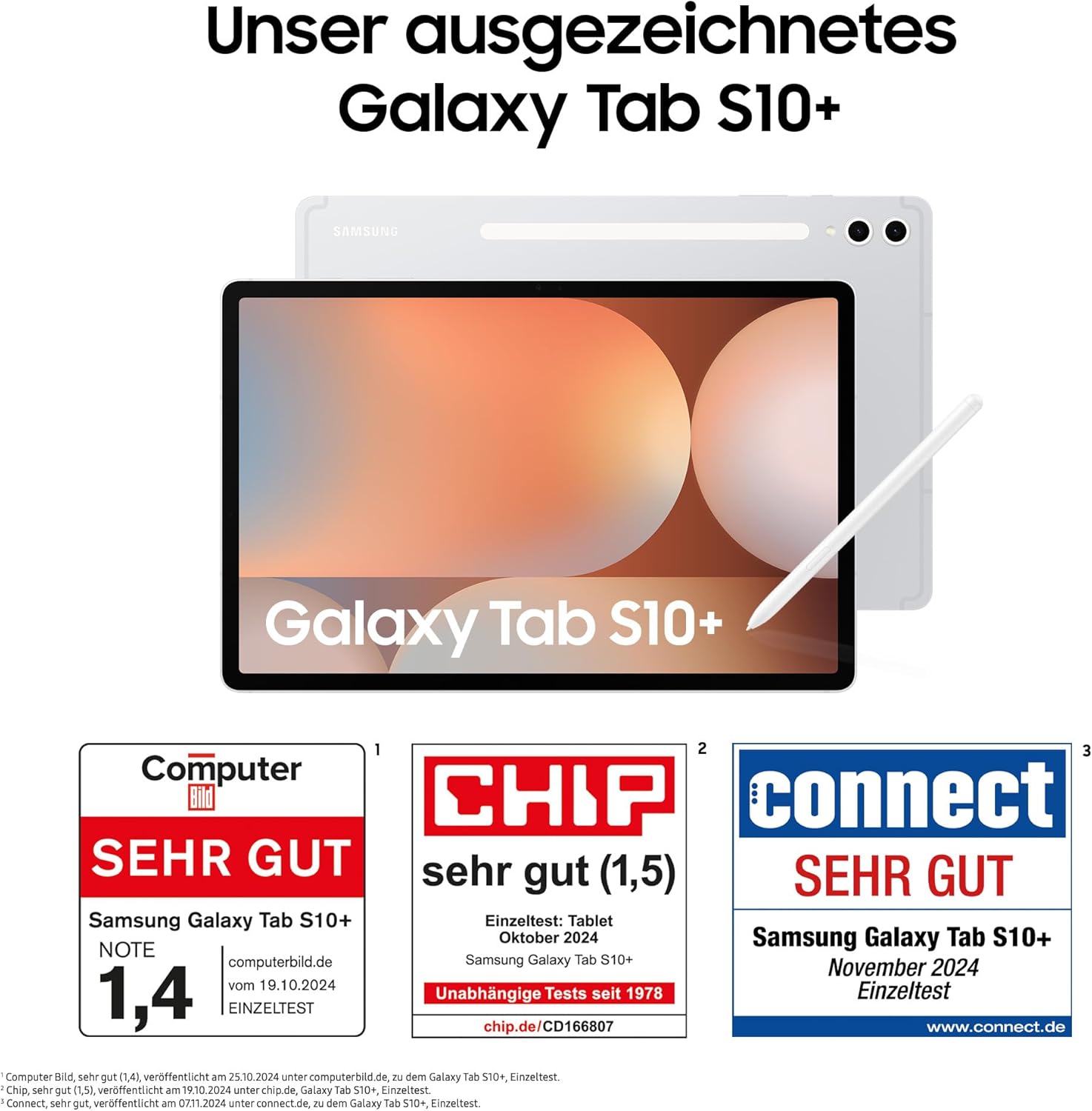 Samsung Galaxy Tab S10+ AI таблет, Android таблет, 12GB RAM, 256GB памет, AMOLED дисплей, антирефлексно покритие, включва S Pen, WiFi, платинено сребрист, 36 месеца гаранция