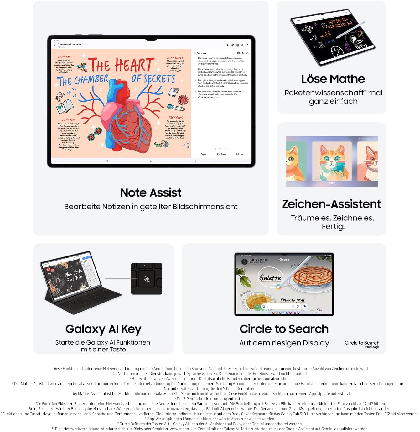 Samsung Galaxy Tab S10 Ultra AI таблет, Android таблет, 12 GB RAM, 512 GB памет, AMOLED дисплей, антирефлексно покритие, включва S Pen, WiFi, платинено сребрист + калъф за клавиатура, черен