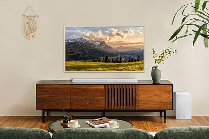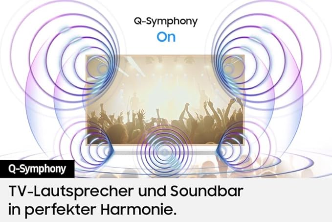 • С Q-Symphony за перфектна настройка на високоговорителите на телевизора и саундбара, комфортна и интелигентна работа благодарение на вградения гласов асистент Alexa и Airplay 2.