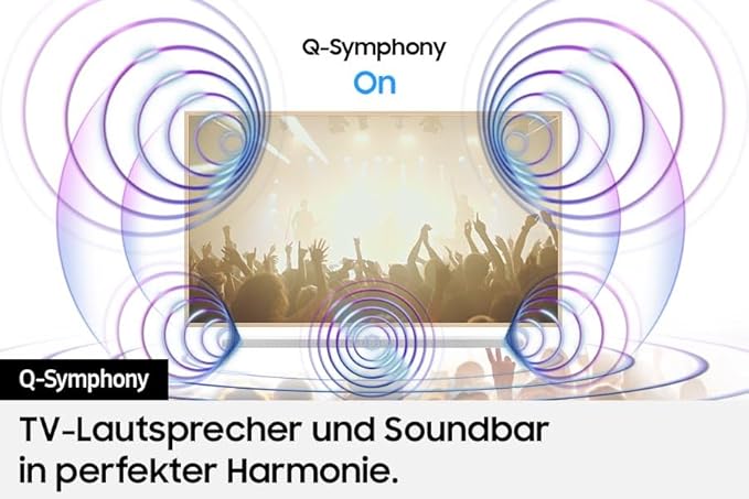 • С Q-Symphony за перфектна настройка на високоговорителите на телевизора и саундбара, комфортна и интелигентна работа благодарение на вградения гласов асистент Alexa и Airplay 2.