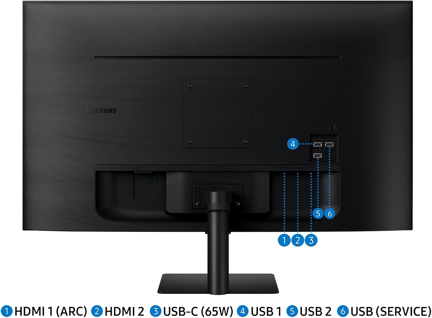 • Съдържание на кутията: 1 x Samsung M70D Smart Monitor 32 инча, включва 1 захранващ кабел, 1 HDMI кабел, 1 USB-C кабел, 1 дистанционно управление със слънчева клетка, LS32DM700UUXEN