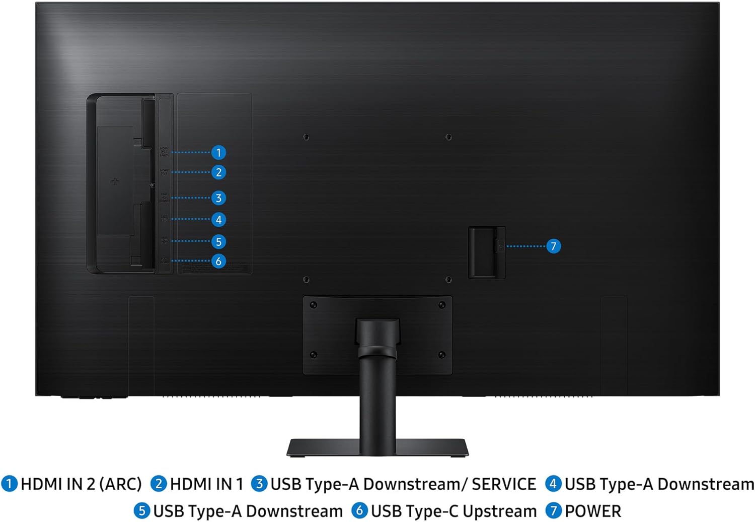 • Съдържание на кутията: 1 x Samsung M70D Smart Monitor 32 инча, включва 1 захранващ кабел, 1 HDMI кабел, 1 USB-C кабел, 1 дистанционно управление със слънчева клетка, LS32DM700UUXEN