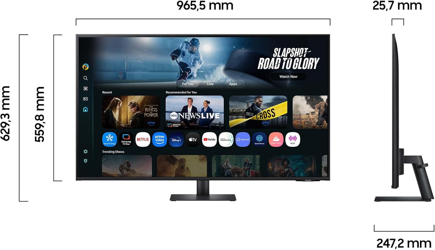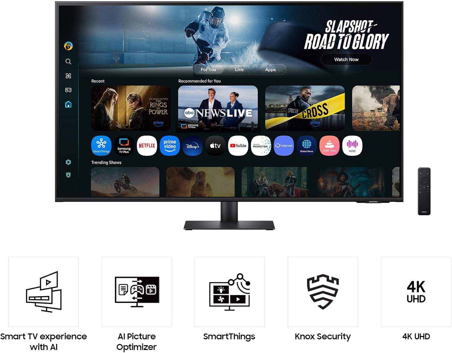Samsung M70F 43-инчов 4K Smart AI монитор, VA панел, 3840 x 2160, 60Hz, 4ms (G/G), високоговорител, геймърски хъб, 4K мащабиране, гласово управление, Smart TV приложения и AI функции, HDR10, LS43FM700UUXEN