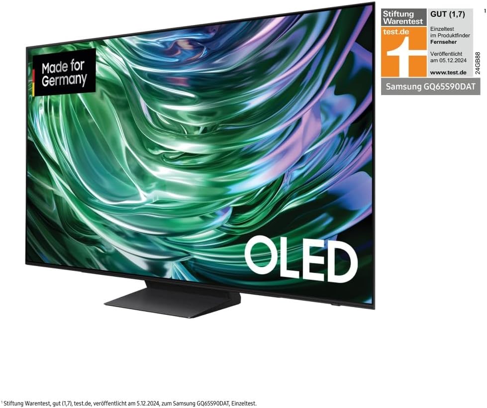 • Обхват на доставката: 1 x Samsung AI TV OLED 4K S90F, 55 инча (138 см), Smart TV с включено дистанционно управление Premium Solar Smart Remote, GQ55S90FAEXZG