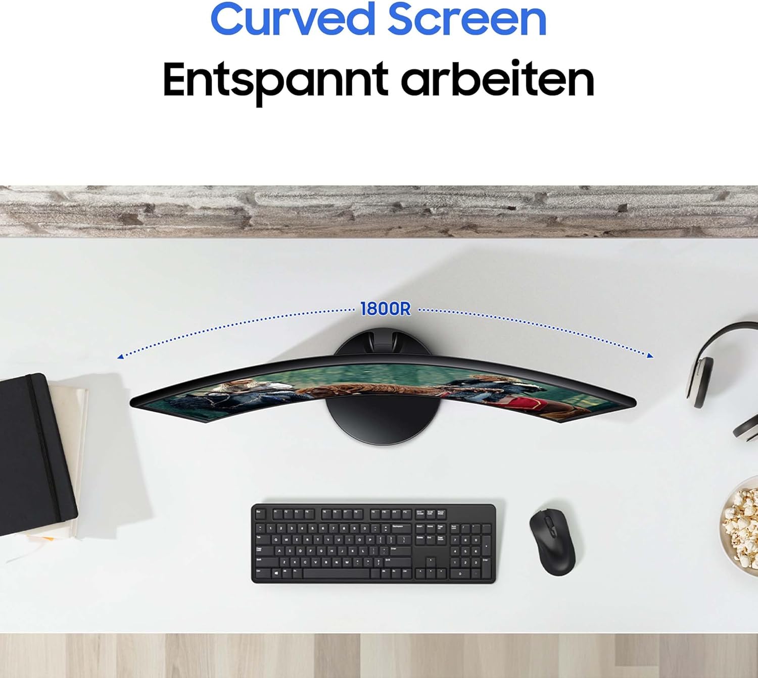 • Прост и ефикасен: компютърен монитор с Full HD резолюция и извит VA панел с кривина от 1800R за по-завладяващо зрително изживяване и по-широко зрително поле