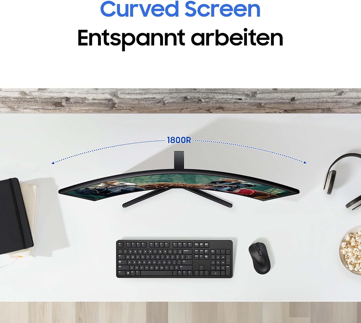 • Прост и ефикасен: компютърен монитор с Full HD резолюция и извит VA панел с кривина от 1800R за по-завладяващо зрително изживяване и по-широко зрително поле