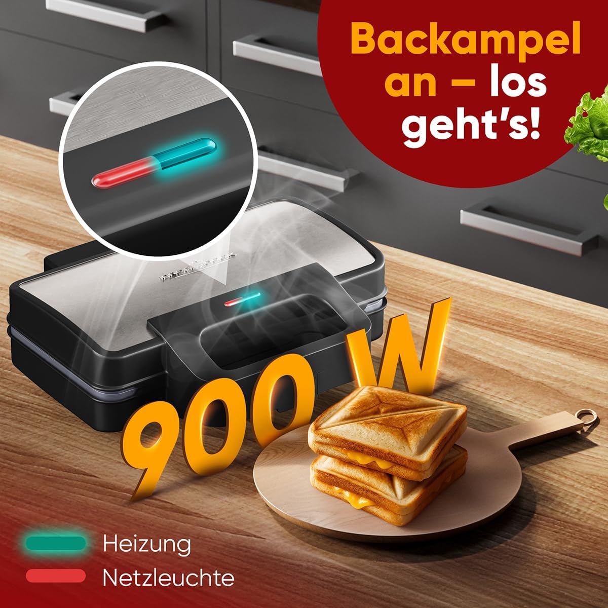 • Сандвич машина с изключително големи плочи за сандвичи за филийки американски XXL тост (приблизително 14,5 см x 15 см)
