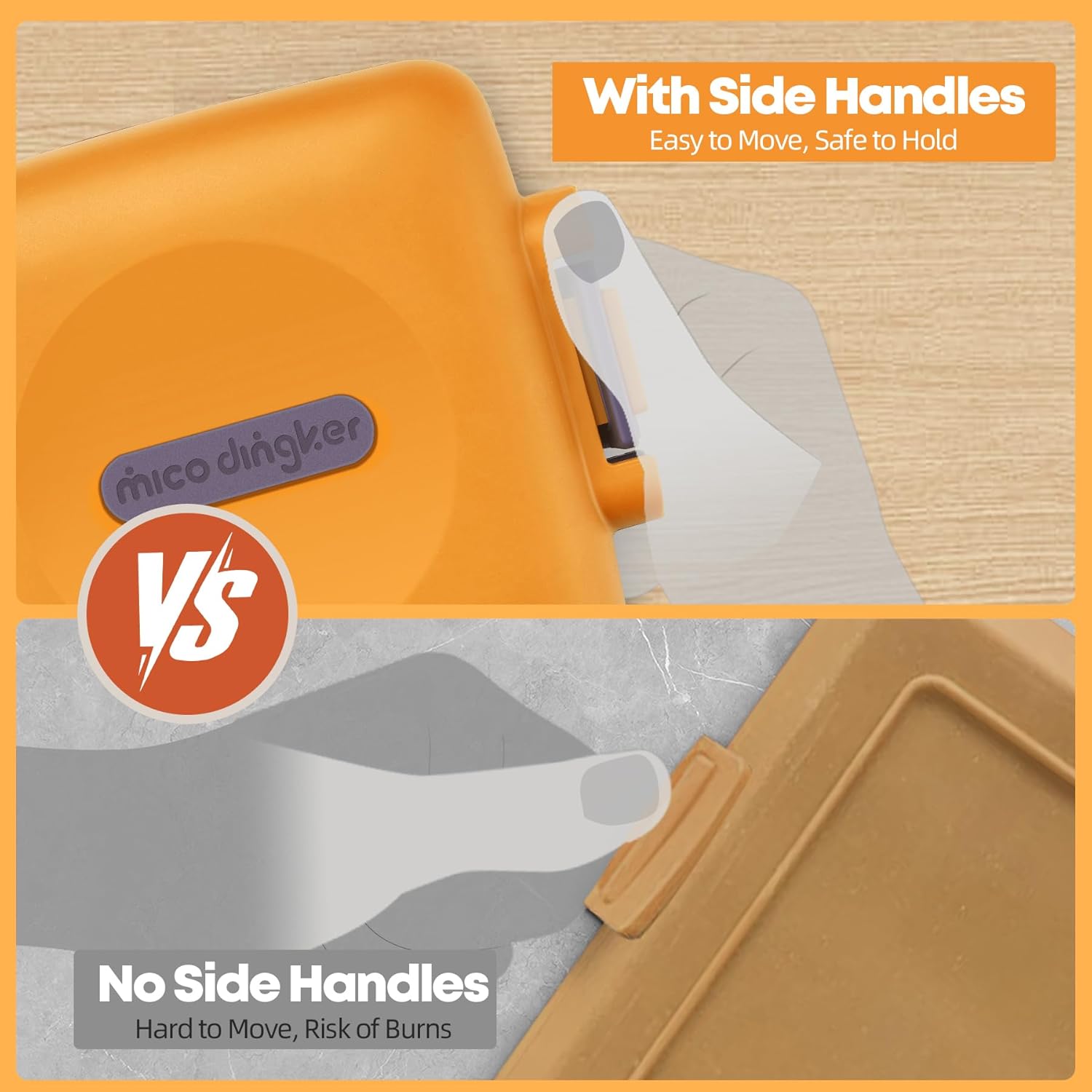• Усъвършенствана технология за топлинни вълни в микровълнова фурна за хрупкава и вкусна храна Горната и долната гумена дъска с две метални плочи за грил са оборудвани с усъвършенствана технология за топлинни вълни в микровълнова фурна, която препича храната равномерно и едновременно. Микровълновата скара MKYSAIL е здраво закрепена в топлоустойчивите силиконови корпуси. Силиконовите скоби се използват за затваряне на външния корпус. Моля, използвайте дебели ръкавици.