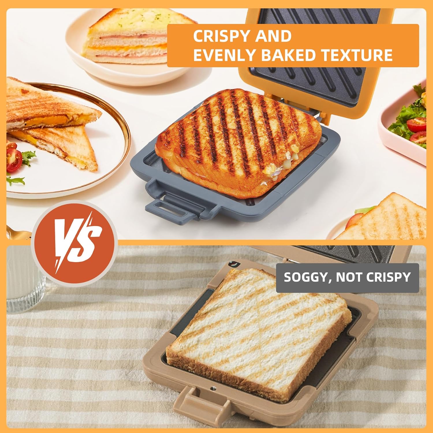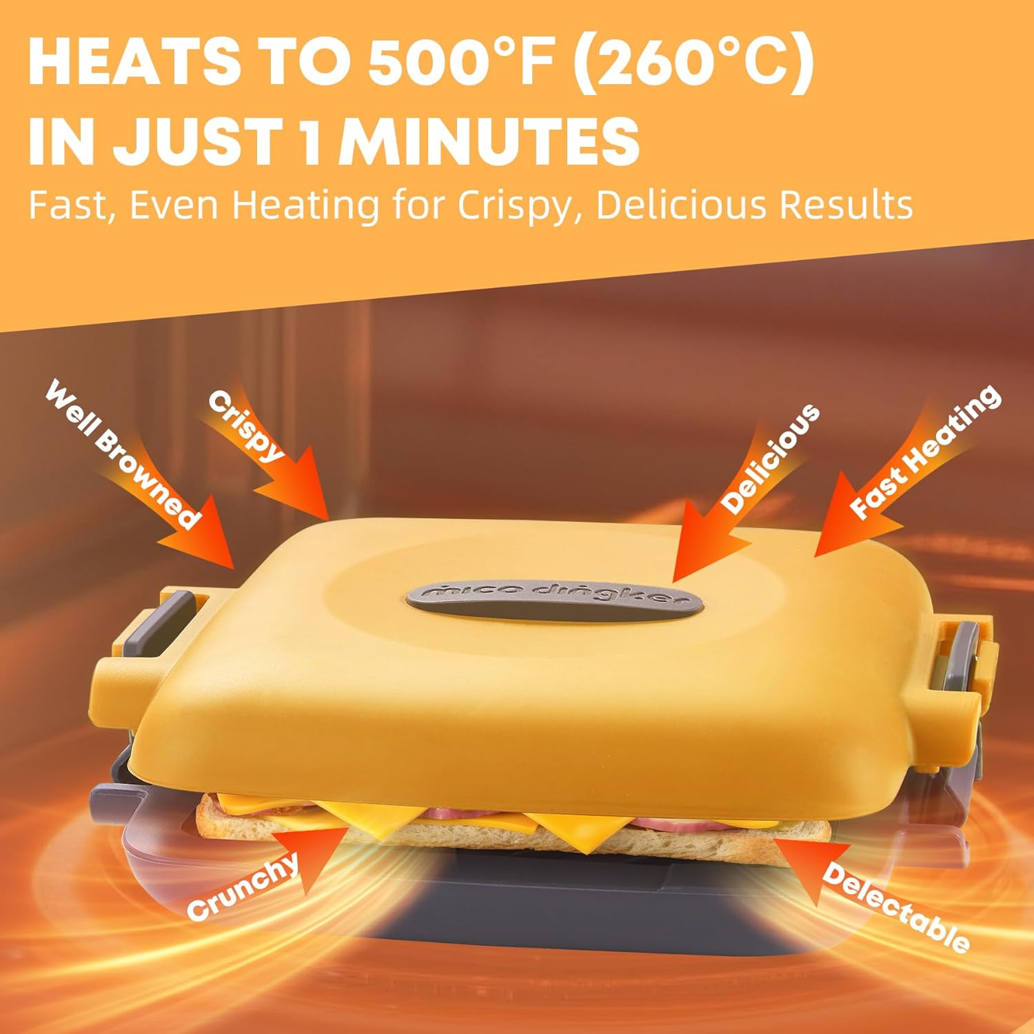 Сандвич машина, Тостер за сандвичи за микровълнова фурна, Тостер за сандвичи с незалепващо покритие, Панини чинии за сандвичи, Безжичен, Оранжев