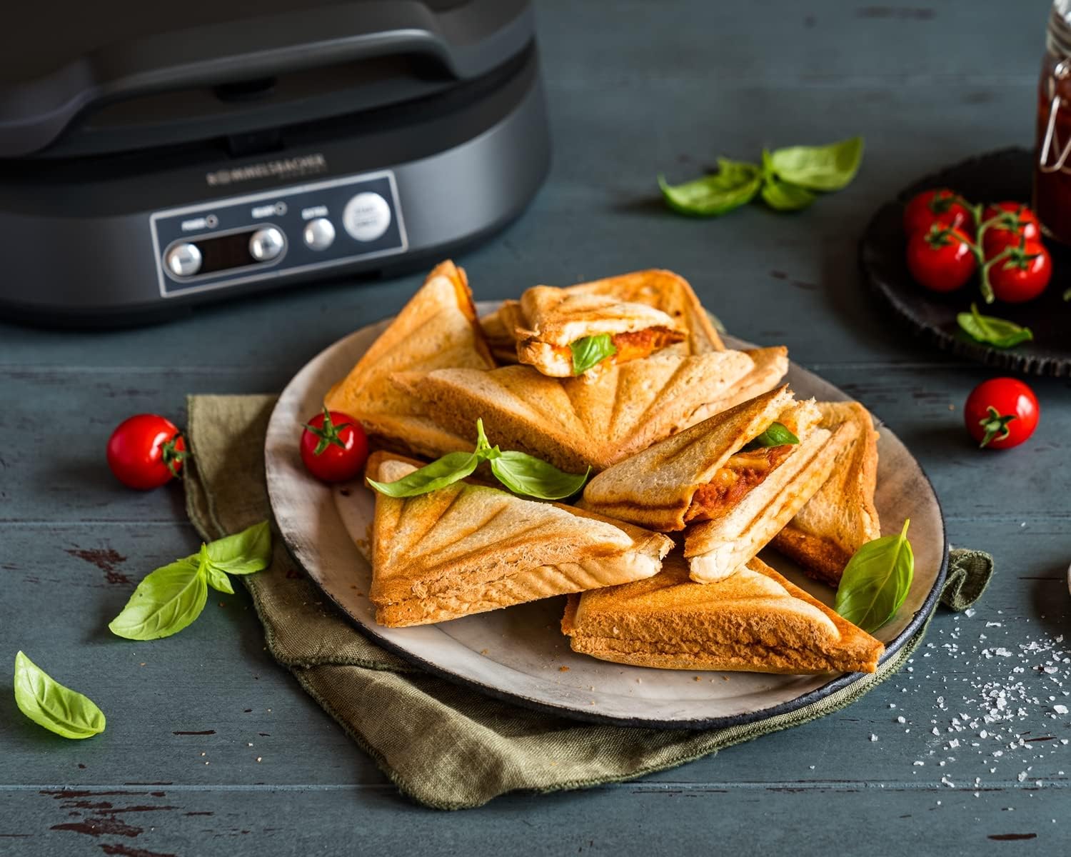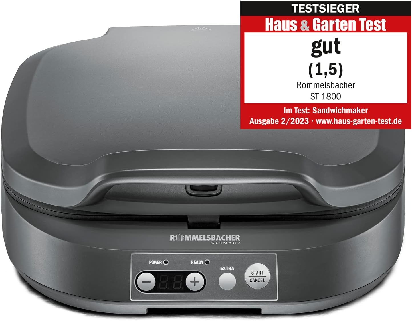 Сандвичник ROMMELSBACHER ST 1800, 4 XL сандвича, незалепващо покритие, 15-минутен таймер, автоматично изключване, хладен на допир корпус, 1800 вата, шистово сиво