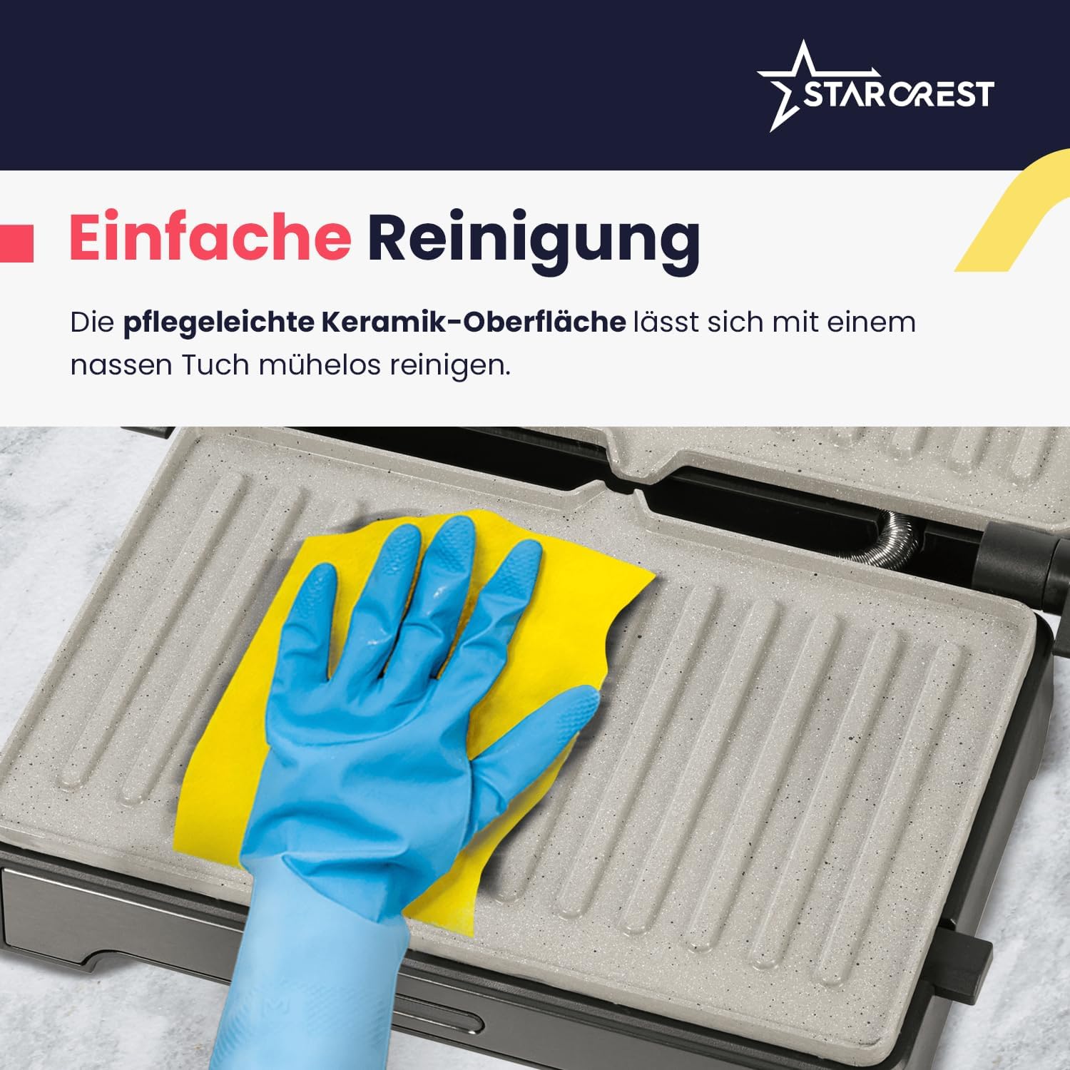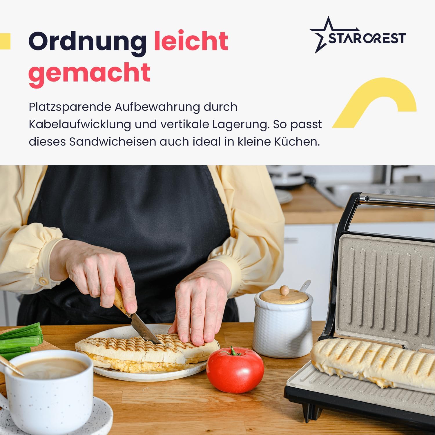 • Насладете се на разнообразни ястия за нула време: тостерът за сандвичи STARCREST е идеален за сандвичи, месо, риба и зеленчуци. Висококачествените керамични плочи в сгъваемия тостер осигуряват лесно печене на скара без добавяне на мазнина или олио.