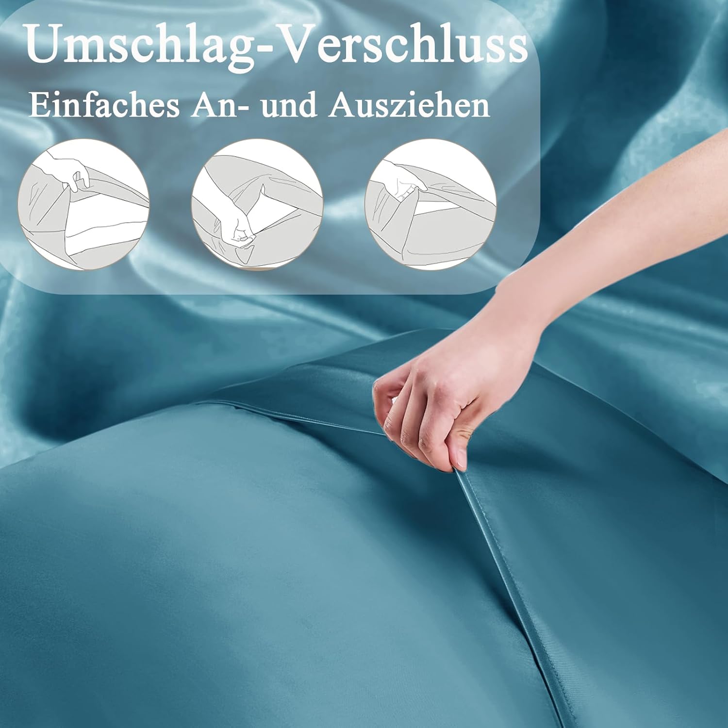 • Закопчаване тип „плик“ и възможност за пране в пералня: Комплект от 2 сатенени калъфки за възглавници (40 x 80 см). Закопчаването тип „плик“ улеснява поставянето и свалянето. Нашите сатенени калъфки за възглавници могат да се перат в пералня без усилие при температура до 30°C и стават още по-меки и пухкави след всяко пране. Наслаждавайте се на свежо и успокояващо изживяване по време на сън всеки ден. Те няма да избледнеят и са по-лесни за поддръжка от копринените калъфки за възглавници.