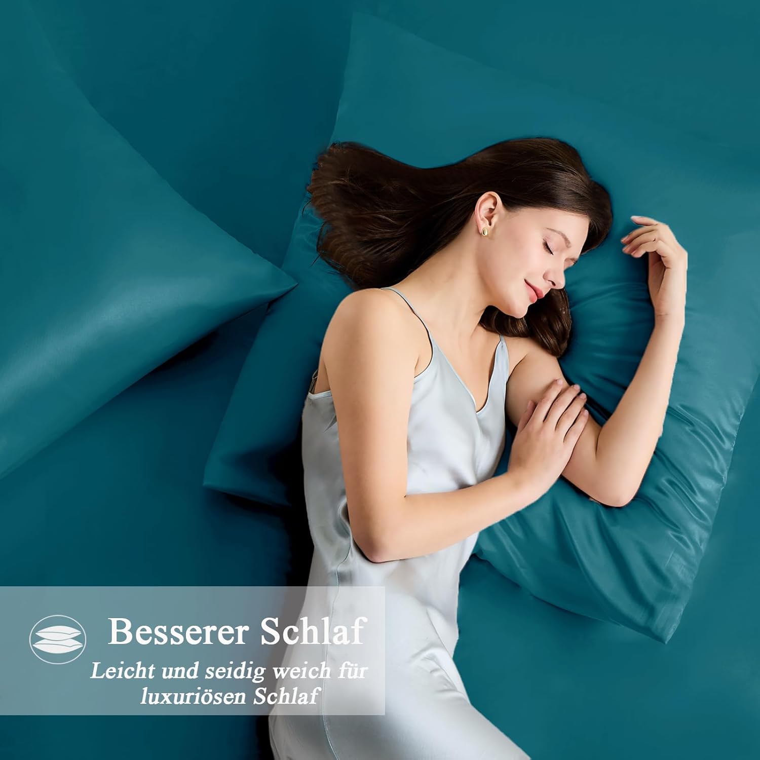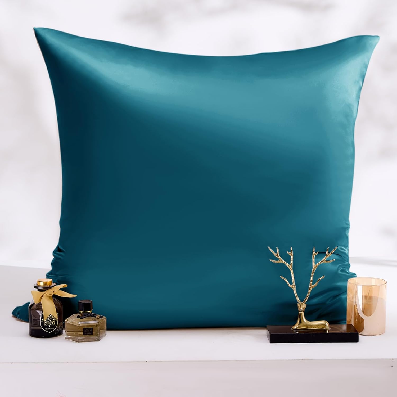 Сатенена калъфка за възглавница 80 x 80 см, комплект от 2 и 2 ластика за коса, петрол, мека като коприна, лесна за поддръжка, за коса и кожа
