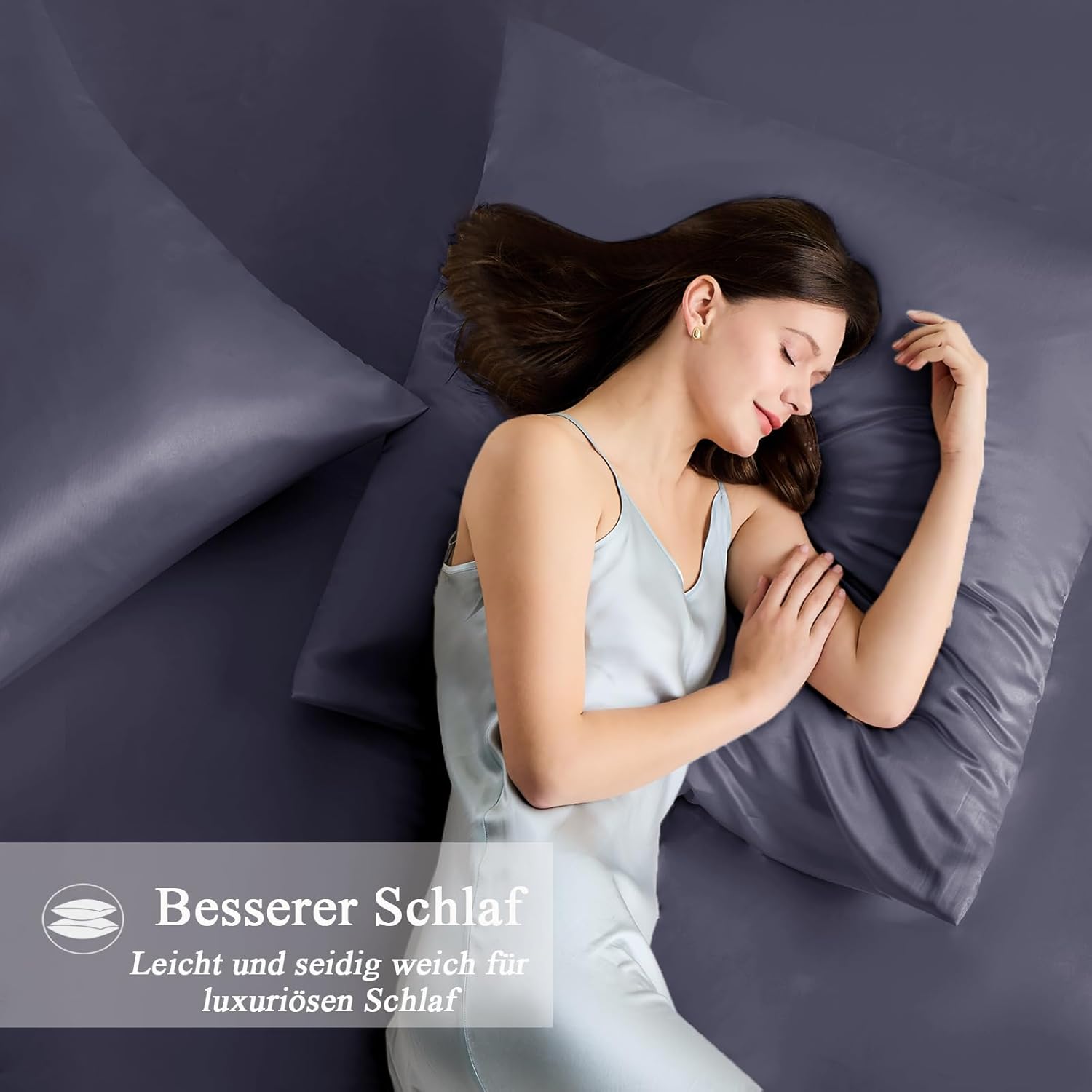 • Закопчаване тип „плик“ и възможност за пране в пералня: Комплект от 2 сатенени калъфки за възглавници (40 x 80 см). Закопчаването тип „плик“ улеснява поставянето и свалянето. Нашите сатенени калъфки за възглавници могат да се перат в пералня без усилие при температура до 30°C и стават още по-меки и пухкави след всяко пране. Наслаждавайте се на свежо и успокояващо изживяване по време на сън всеки ден. Те няма да избледнеят и са по-лесни за поддръжка от копринените калъфки за възглавници.
