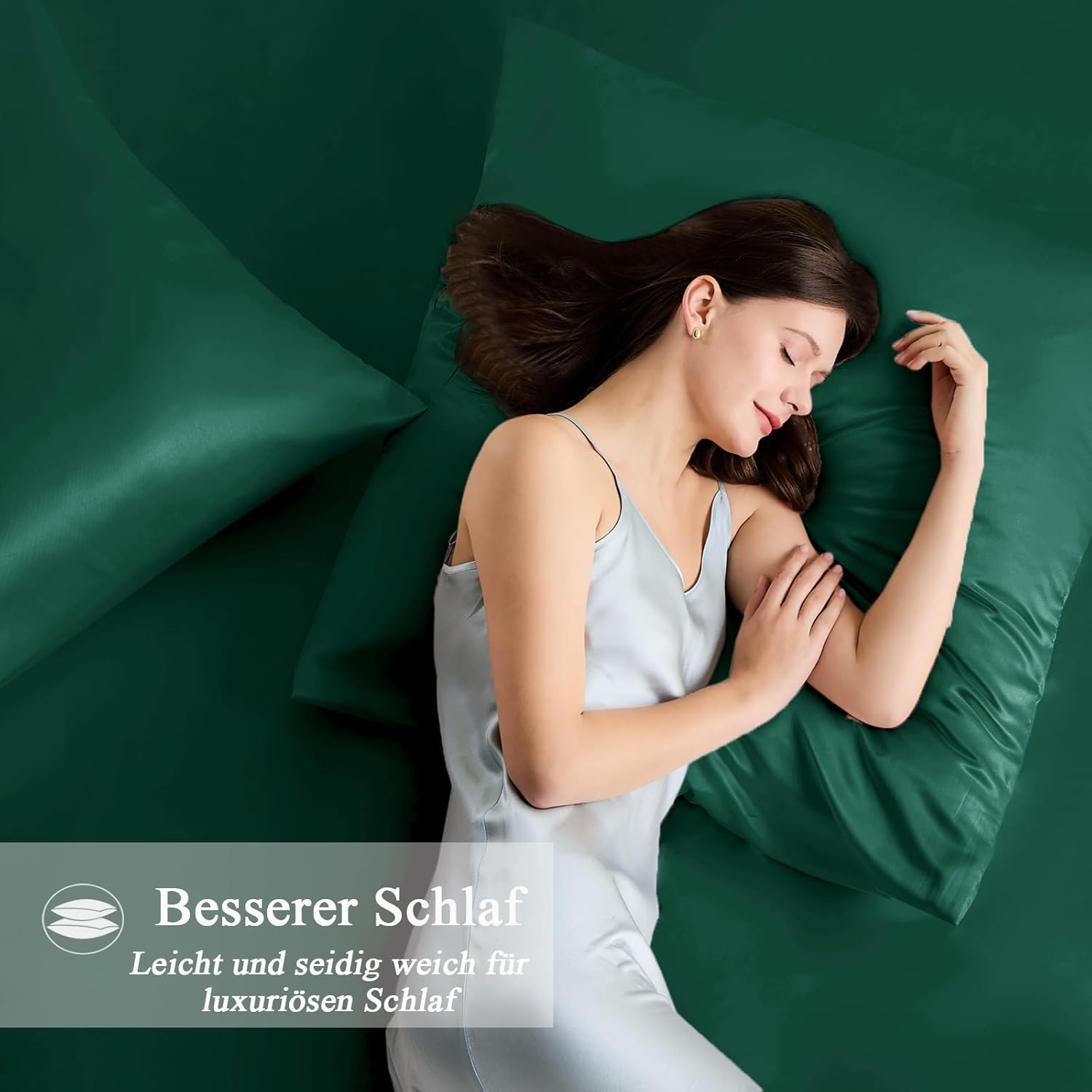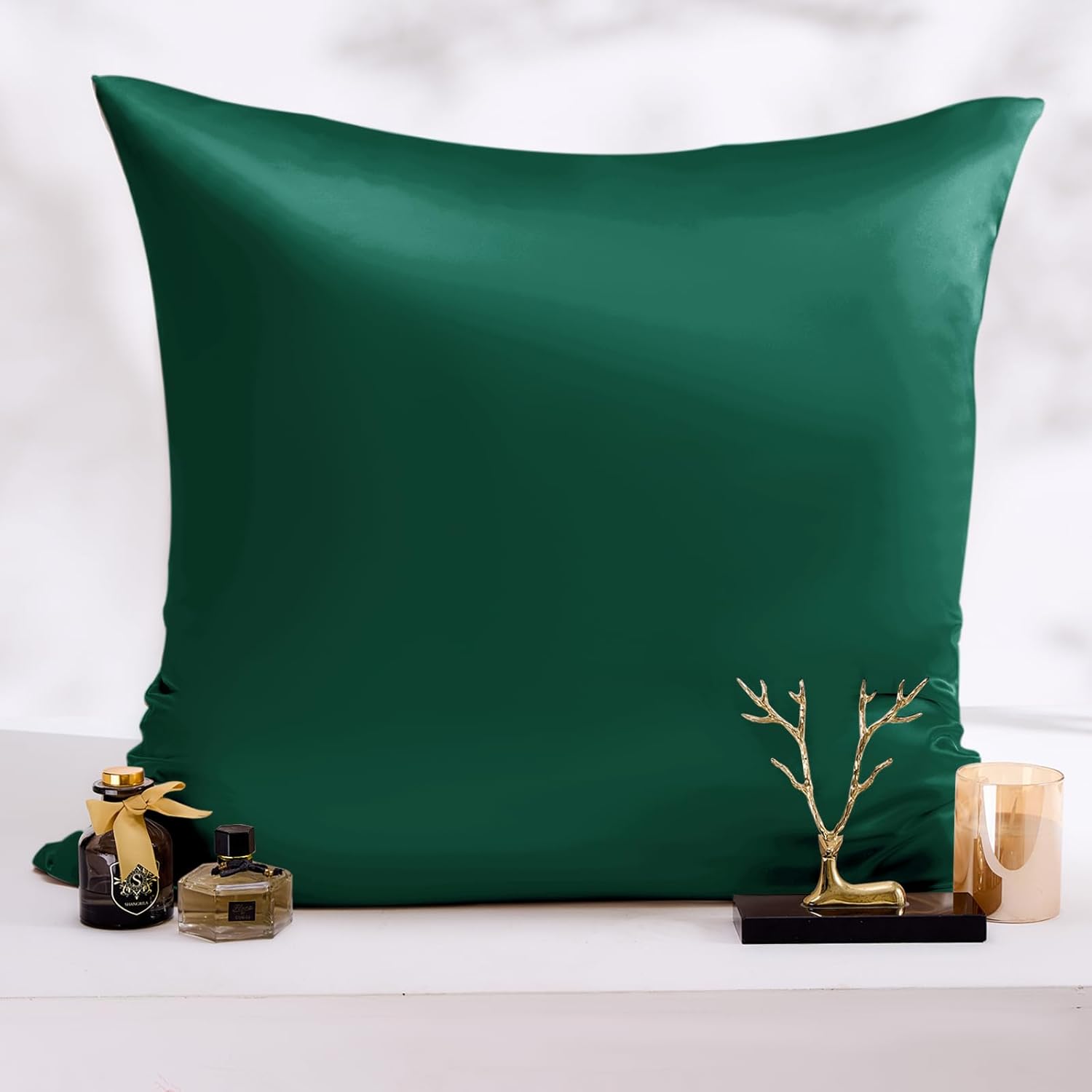 Сатенена калъфка за възглавница 80 x 80 см, комплект от 2 и 2 ластика за коса, тъмнозелена, мека като коприна, лесна за поддръжка, за коса и кожа