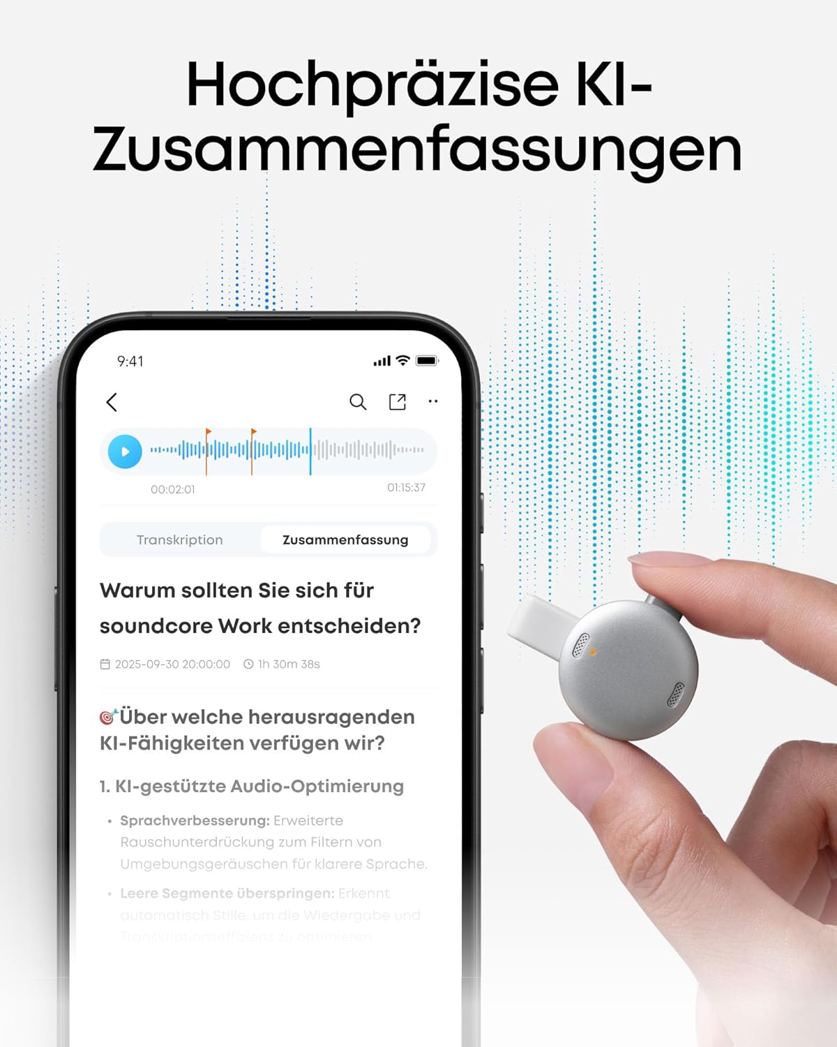 • Още по-ефективно: Започнете запис с натискането на един бутон и получете високопрецизни, базирани на GPT транскрипции – автоматично обобщени в ясни, структурирани отчети с помощта на интелигентни шаблони.