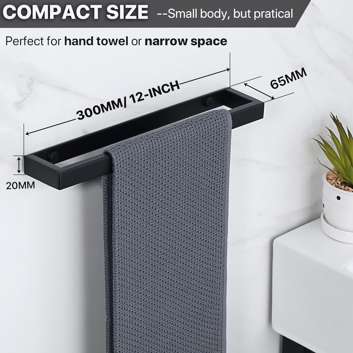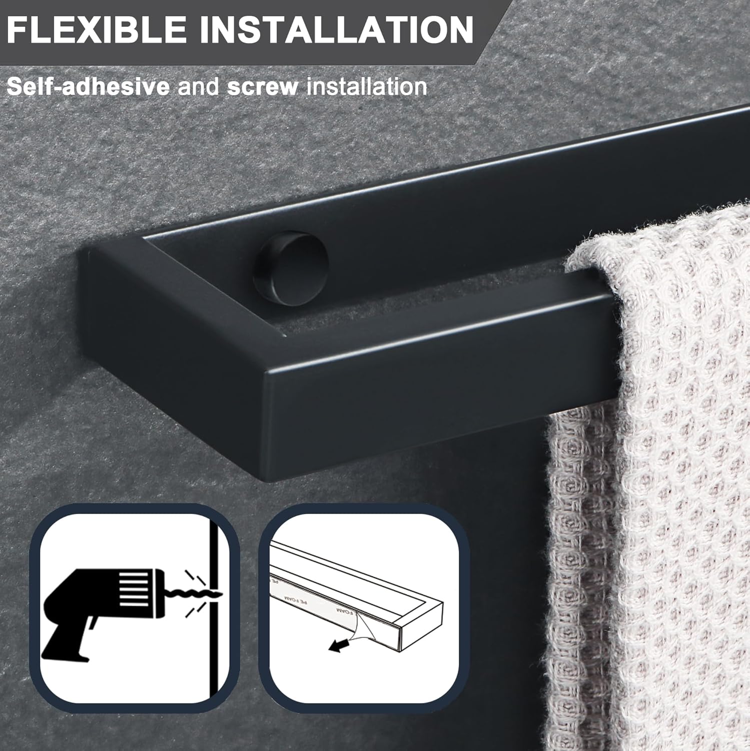 Sayayo EGJF030-B Поставка за кърпи за баня, Черна, без пробиване, Стенен държач за кърпи от неръждаема стомана за баня и кухня, 30 см