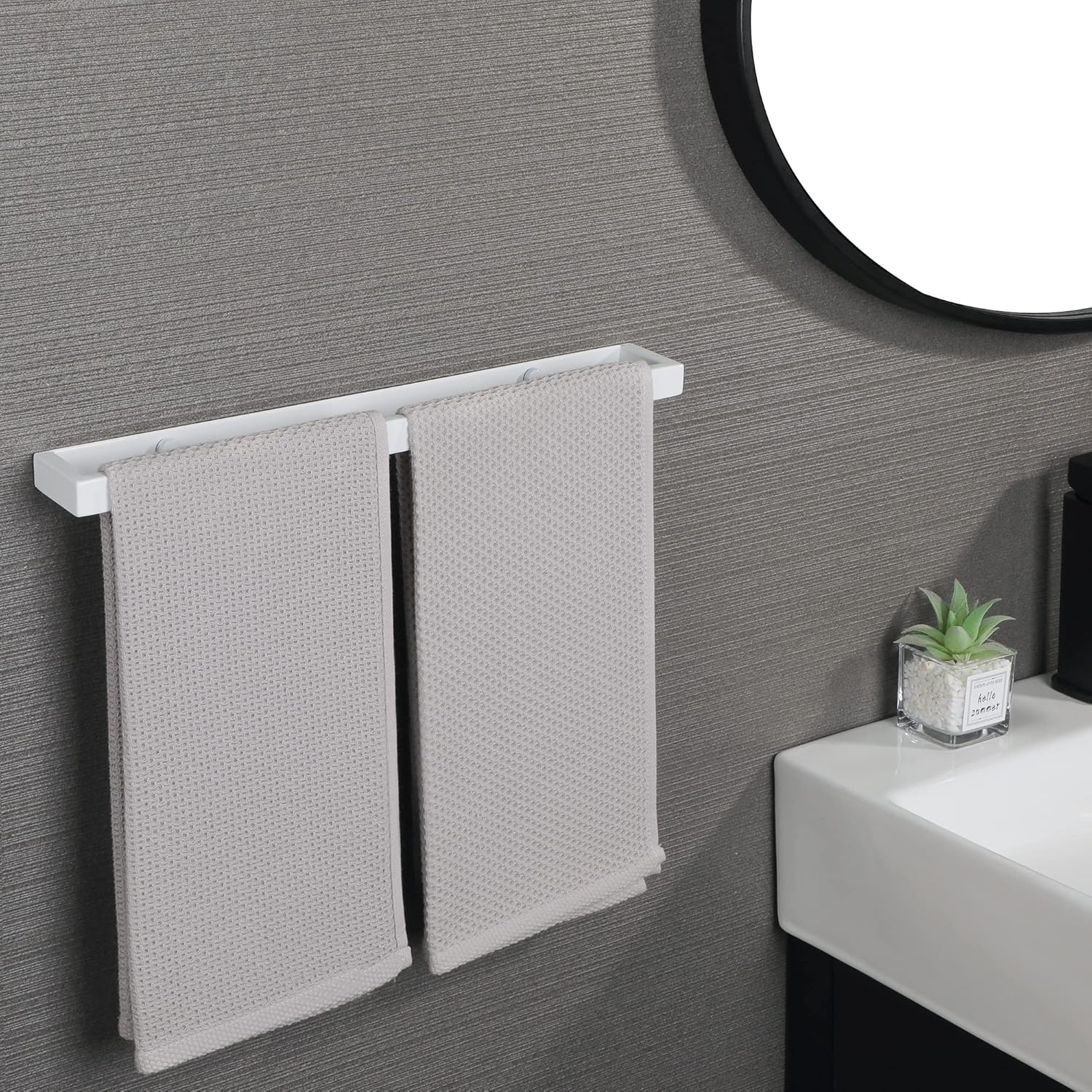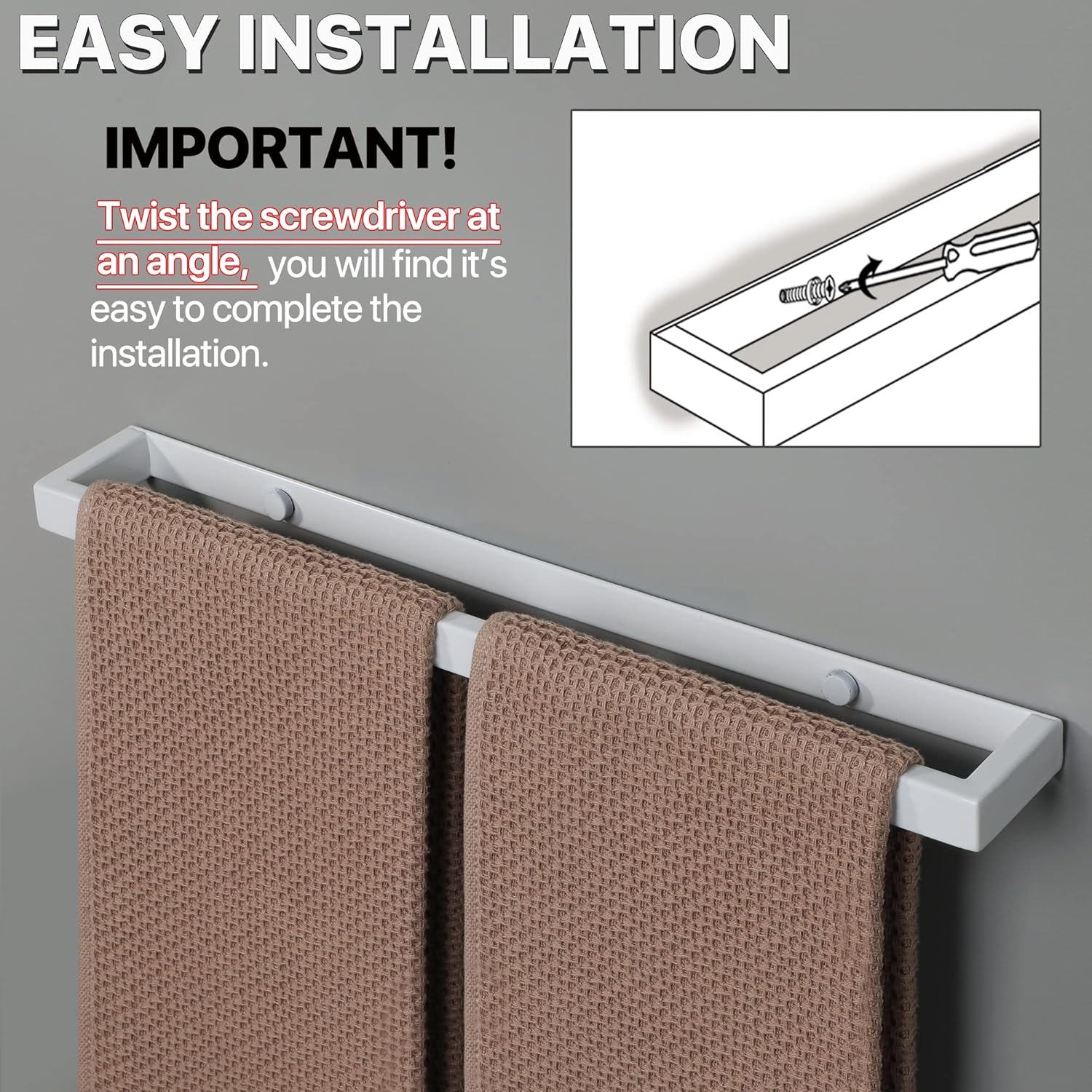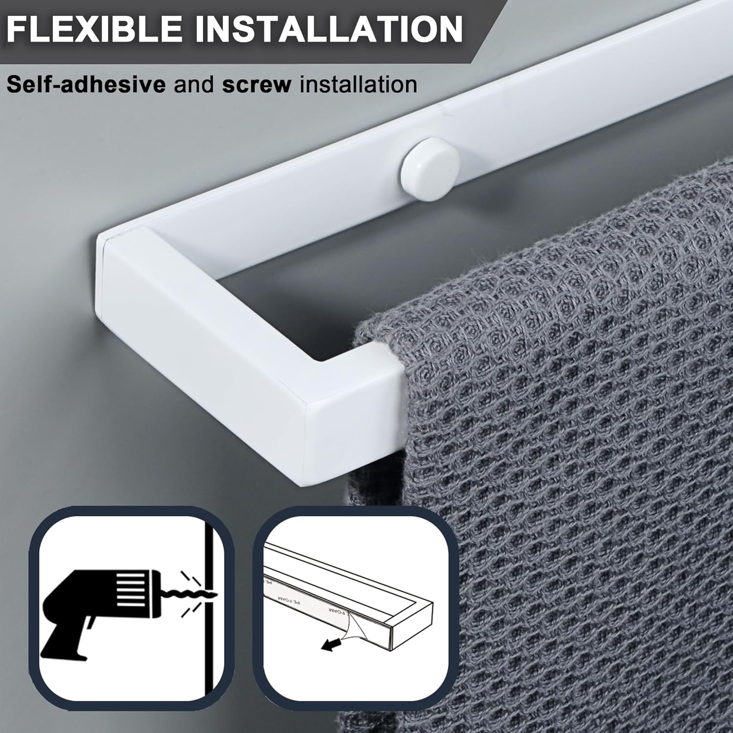 Sayayo EGJF040-W Поставка за кърпи за баня, бяла, без пробиване, стенен държач за кърпи от неръждаема стомана за баня и кухня, 40 см