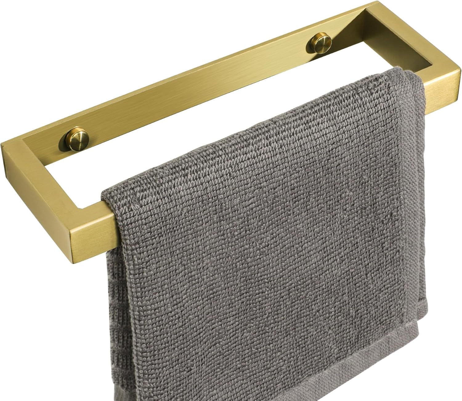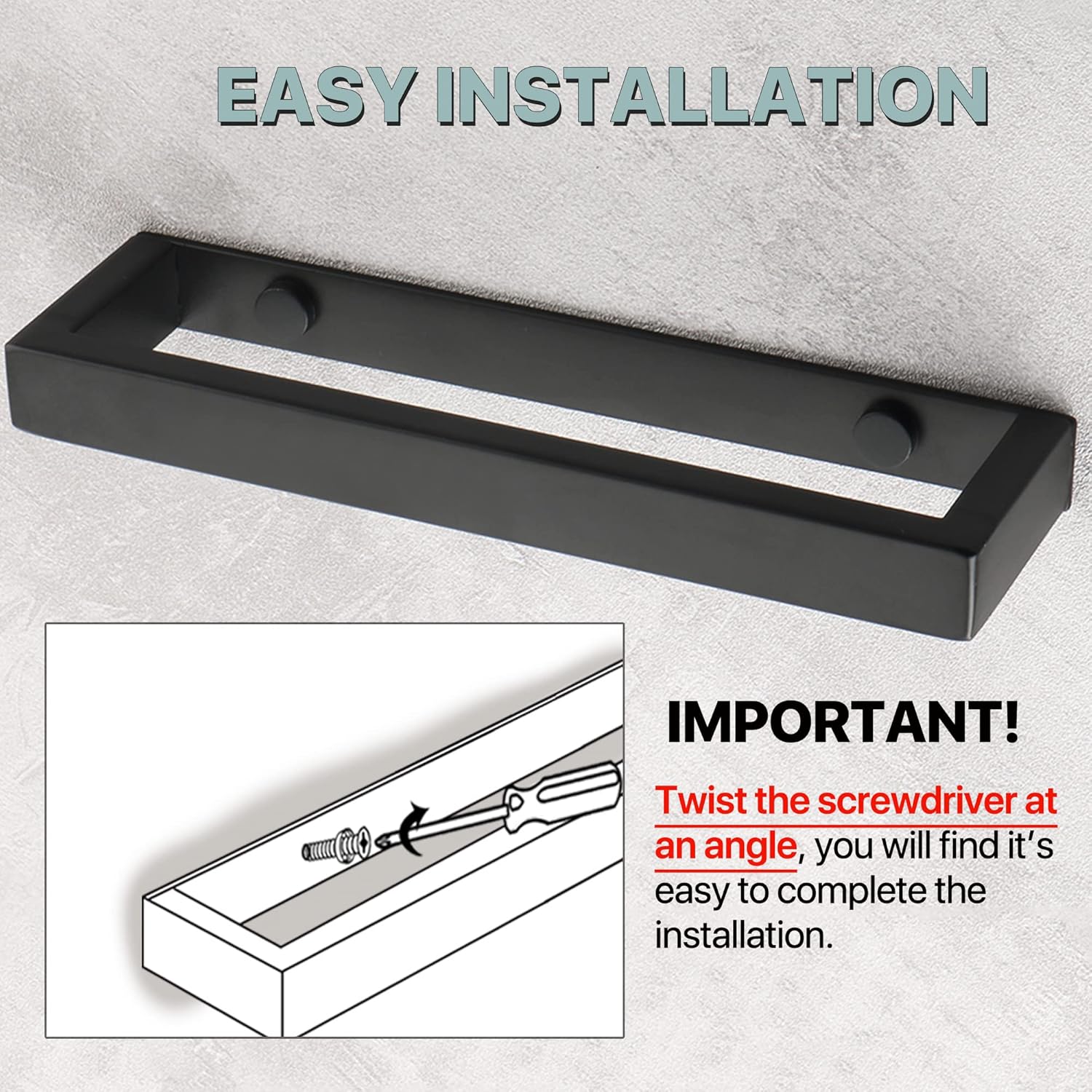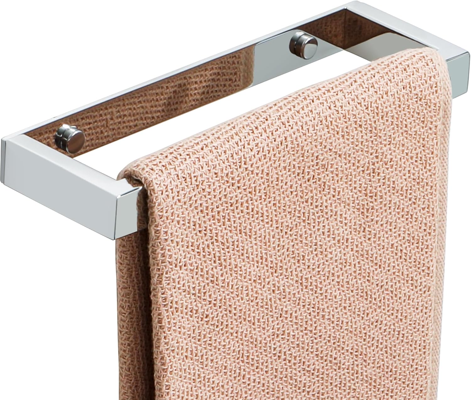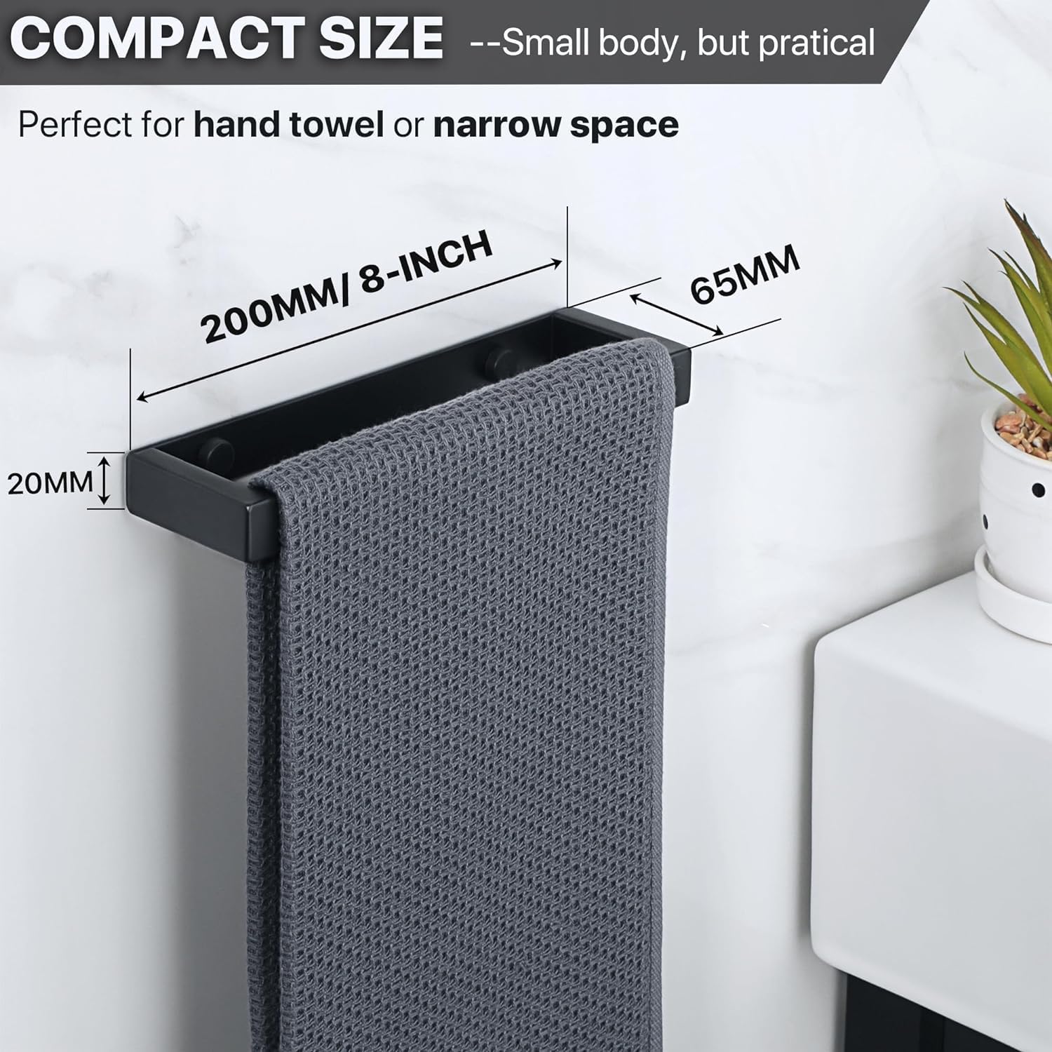 SAYAYO Поставка за кърпи, без пробиване, черна, без пробиване, самозалепваща се или за пробиване, за стенен монтаж, неръждаема стомана, държач за кърпи за баня и кухня, 20 см