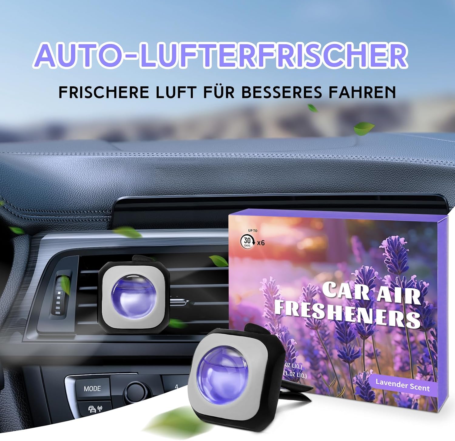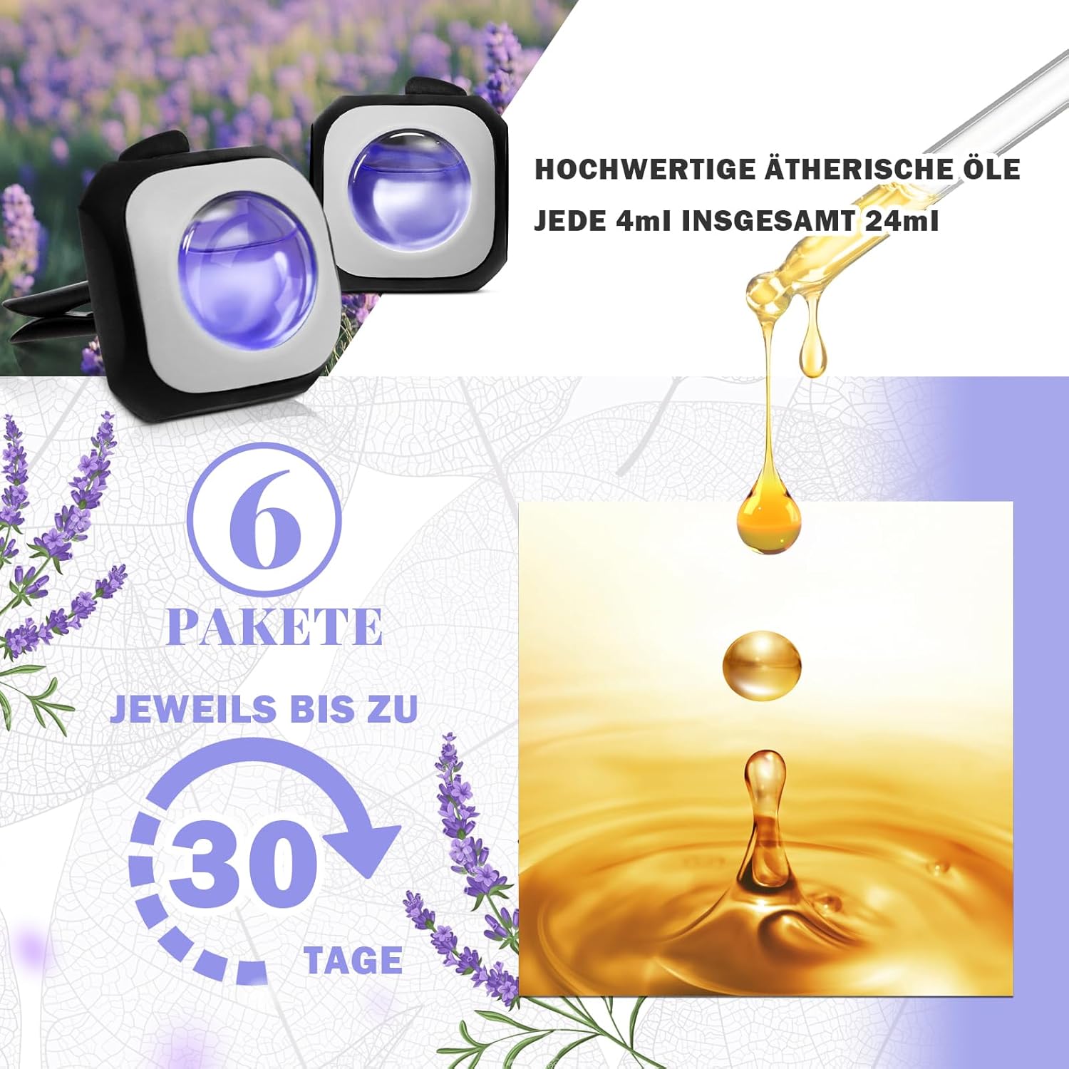 SCENTORINI Аромат за кола, Освежител за въздух за кола, Аромат за интериор на кола с лавандула, Аромат за кола, Борба с миризми в колата, Парфюм за кола, 4 мл x 6 броя