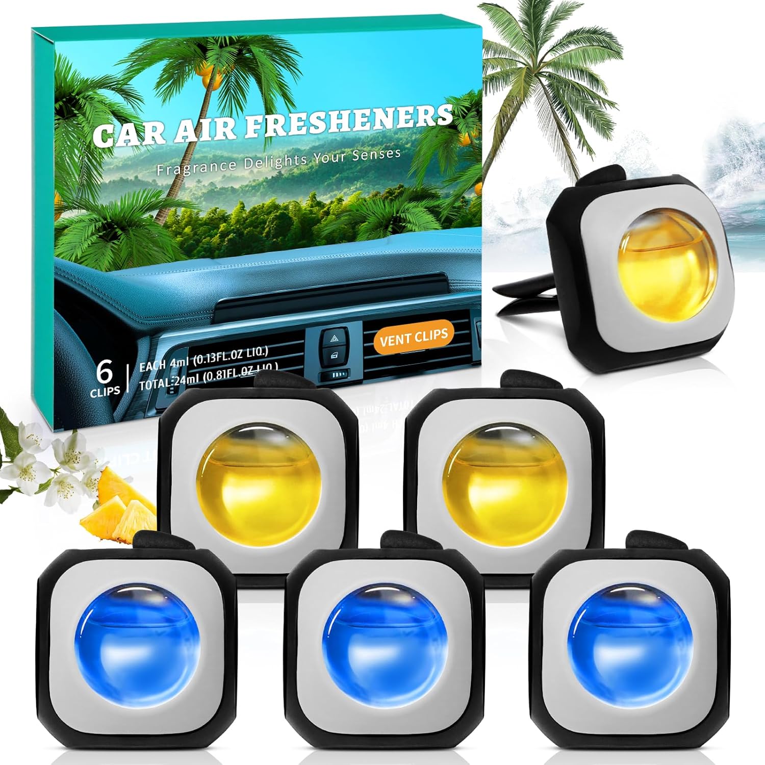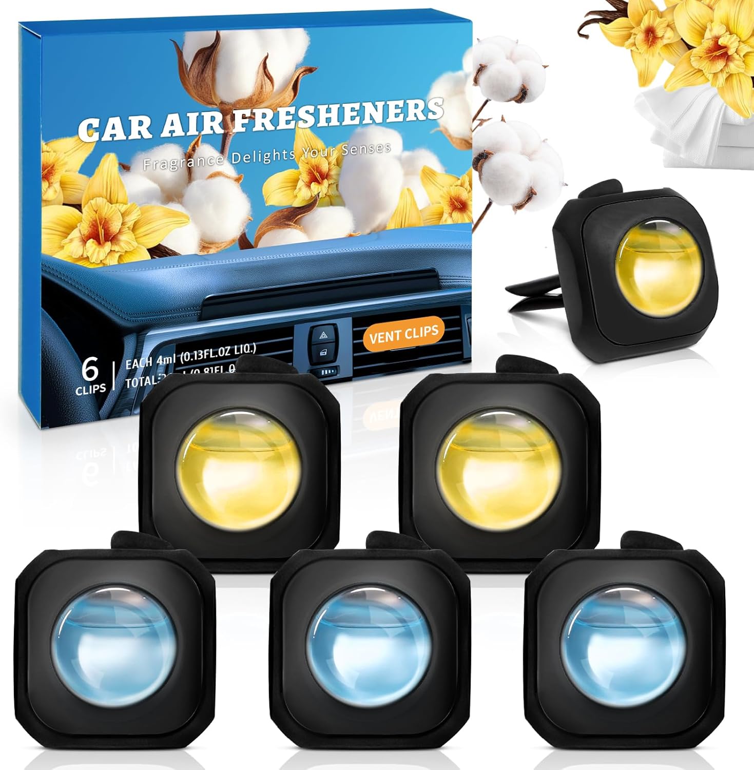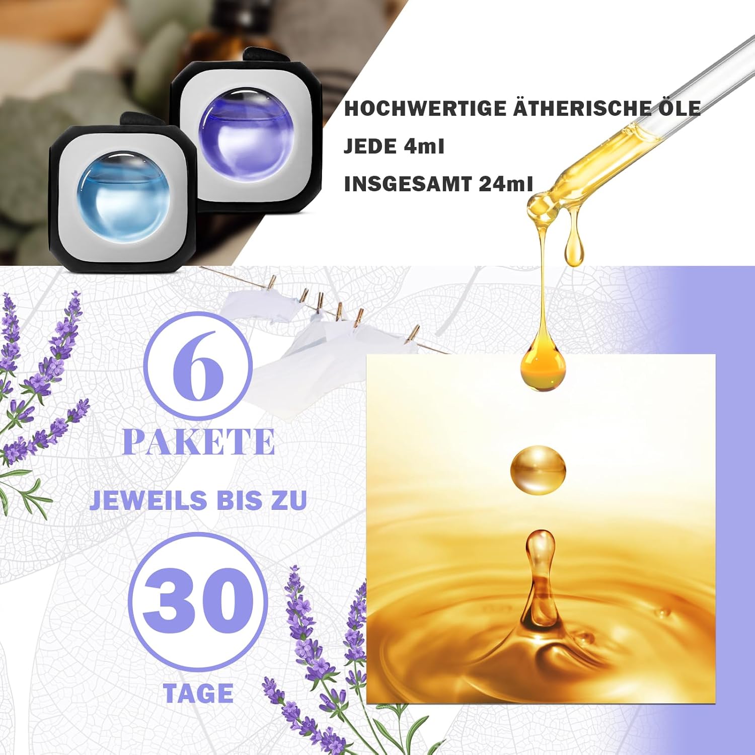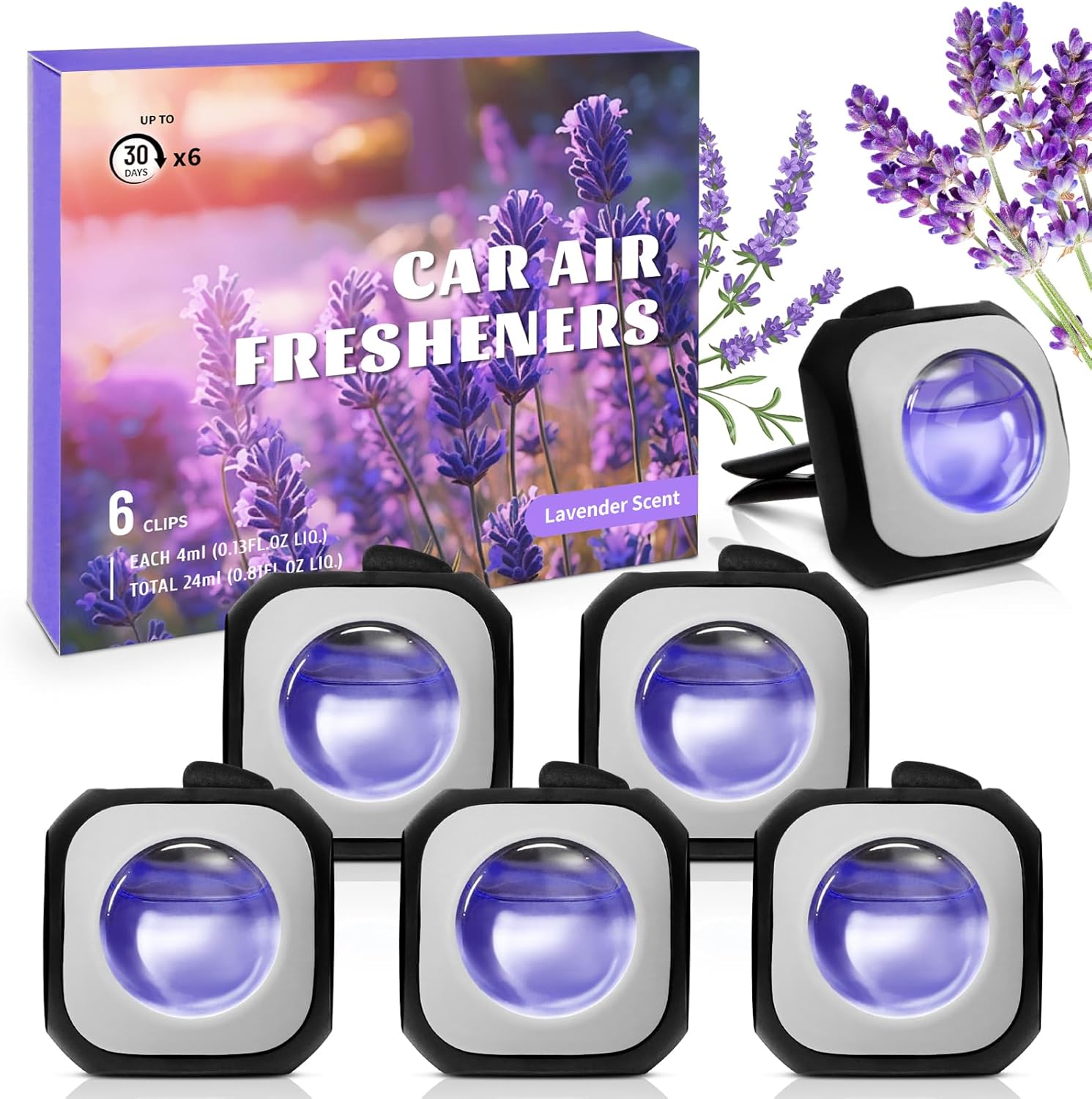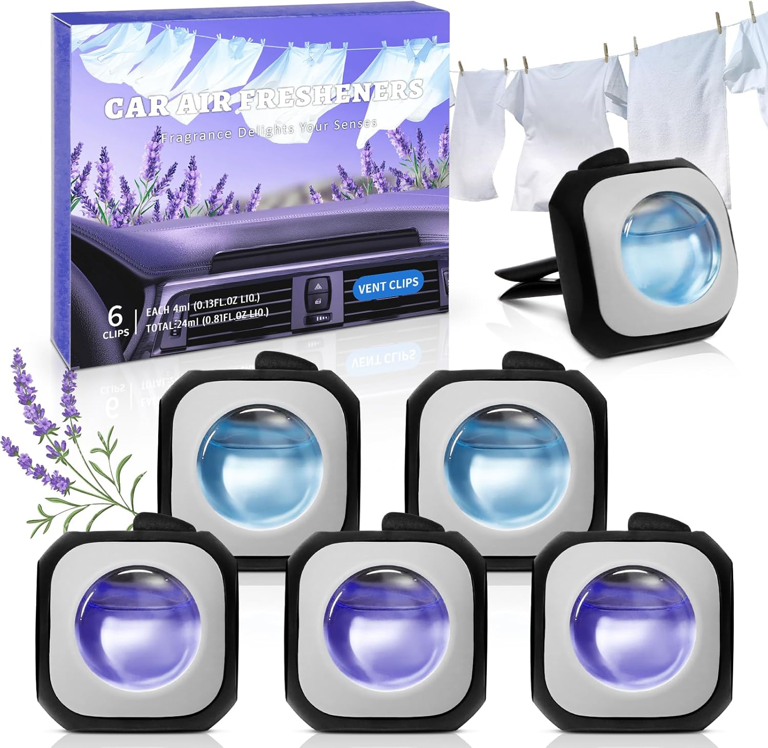 SCENTORINI Щипки за освежители за въздух за кола, Парфюм за кола, Аромат за нова кола, 4 мл x 6 броя, Лавандула, Аромат на свеж лен