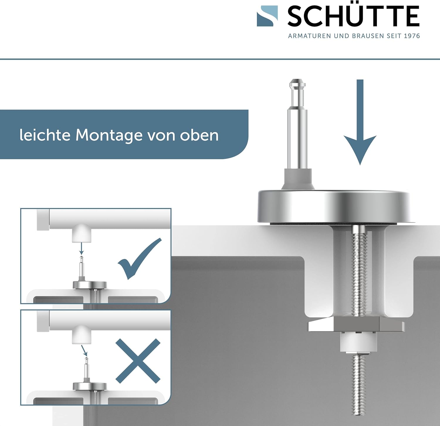 • SCHÜTTE Разработен като водещ немски производител в продължение на над 40 години на продукти за санитарния сектор. В нашия офис във Валенхорст можете да се свържете с нас, ако имате въпроси относно продукта, монтажа или рекламация на номер: 05407-8152903.