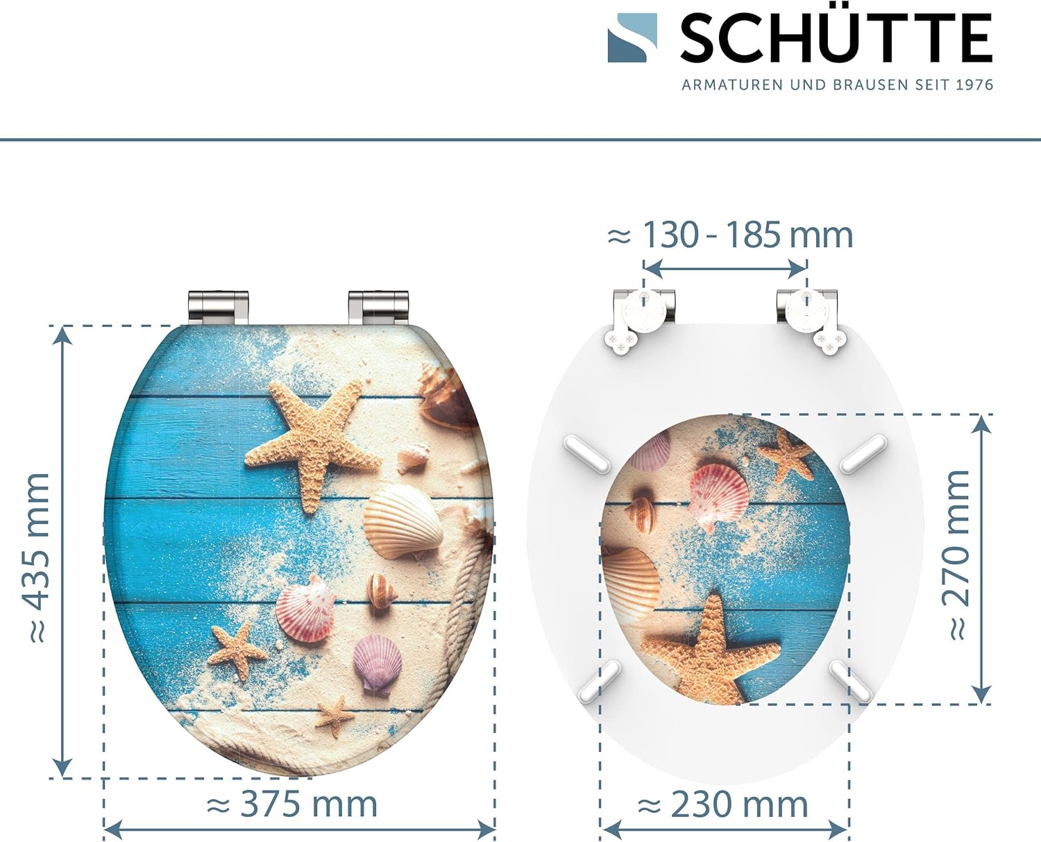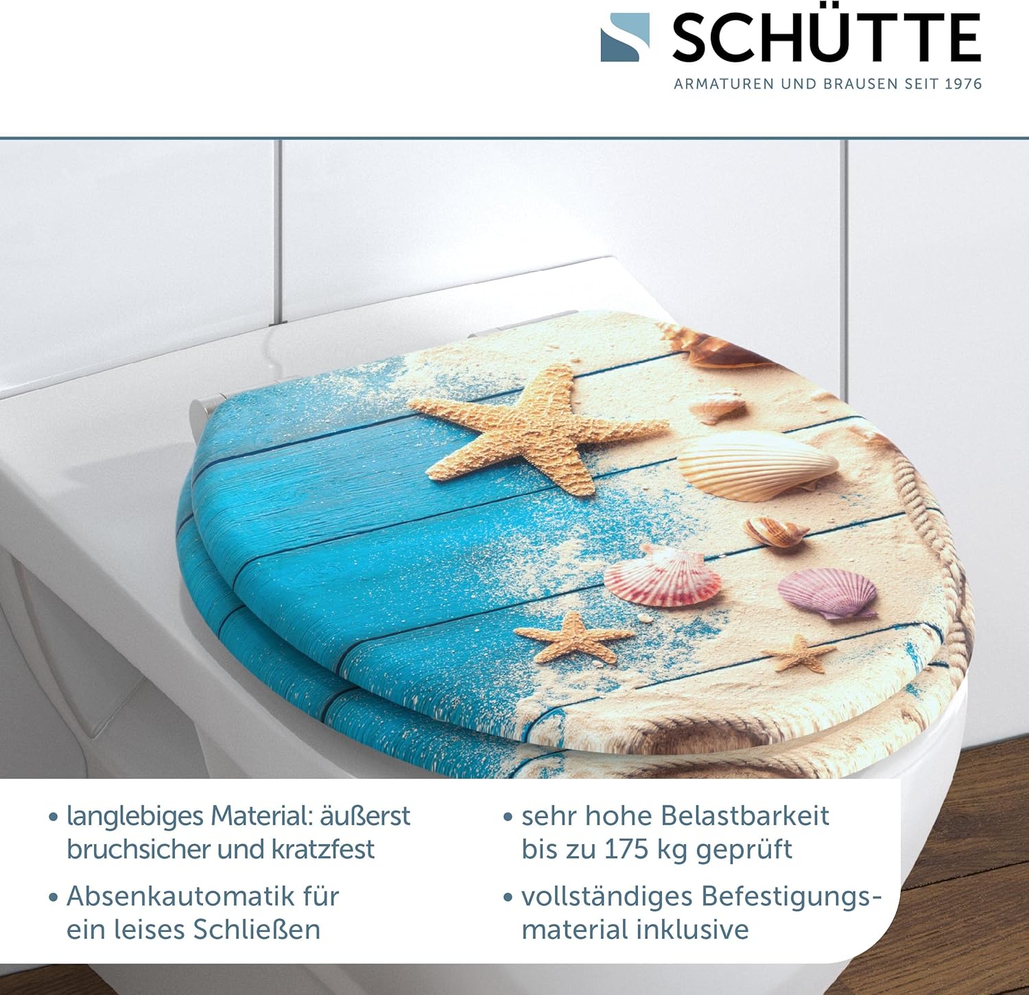 SCHÜTTE Тоалетна чиния Beach Wood с механизъм за плавно затваряне, Тоалетна чиния с капак, Дървен капак с мотив (Максимално натоварване на тоалетната чиния: 175 кг), Многоцветна