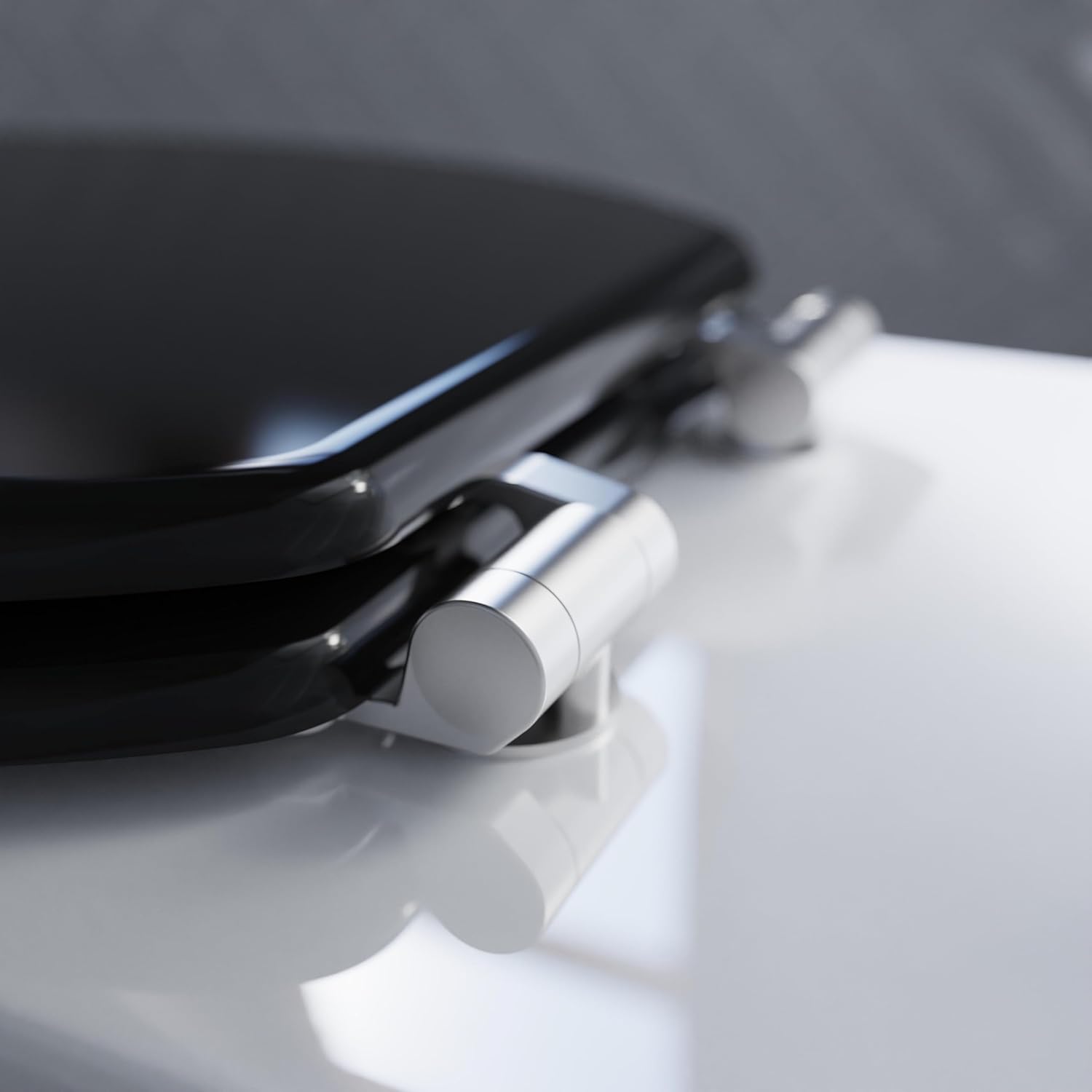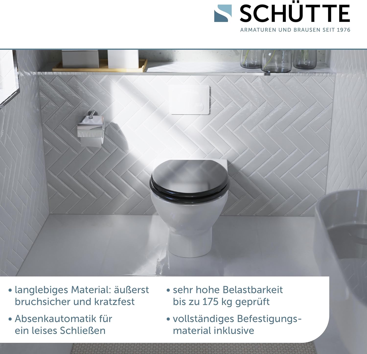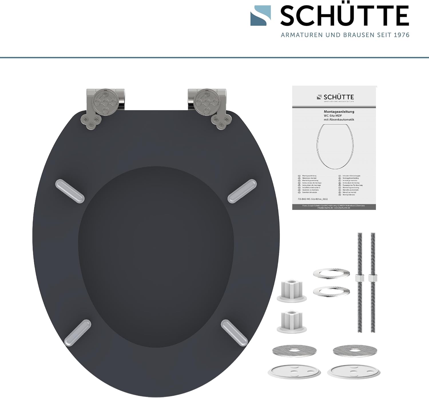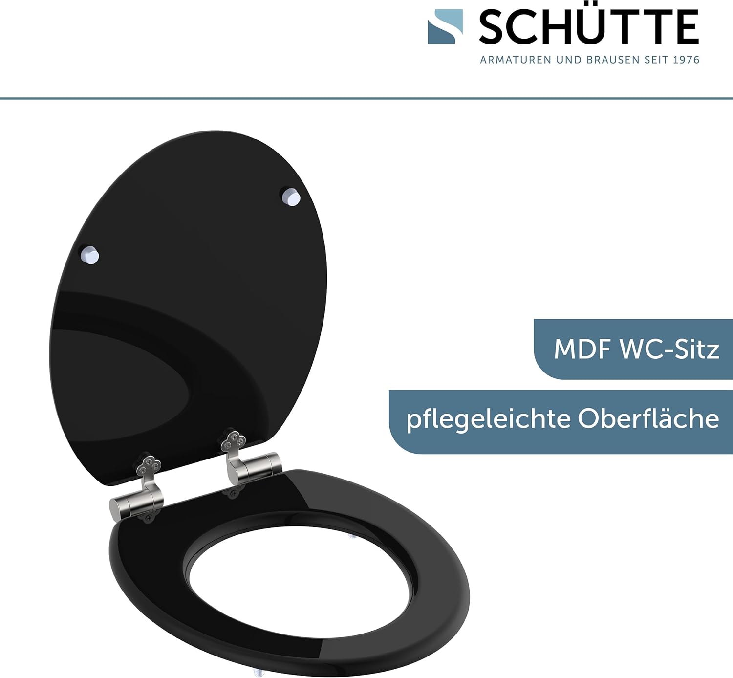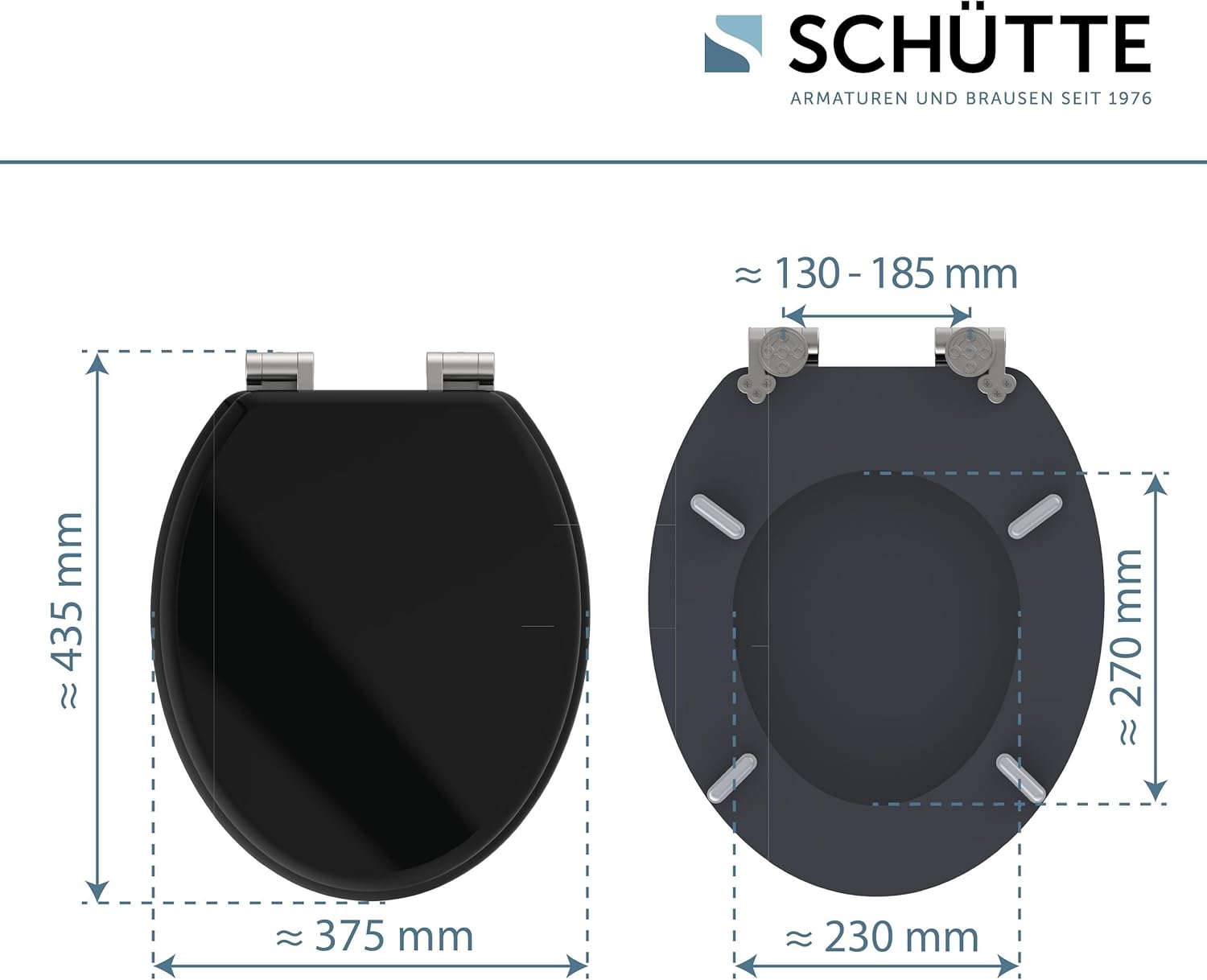 SCHÜTTE Тоалетна чиния черна с механизъм за плавно затваряне, изработена от дърво, Тоалетна чиния с капак, Капак за тоалетна чиния с дървена сърцевина и мотив (Максимално натоварване на тоалетната чиния 175 кг) Черна