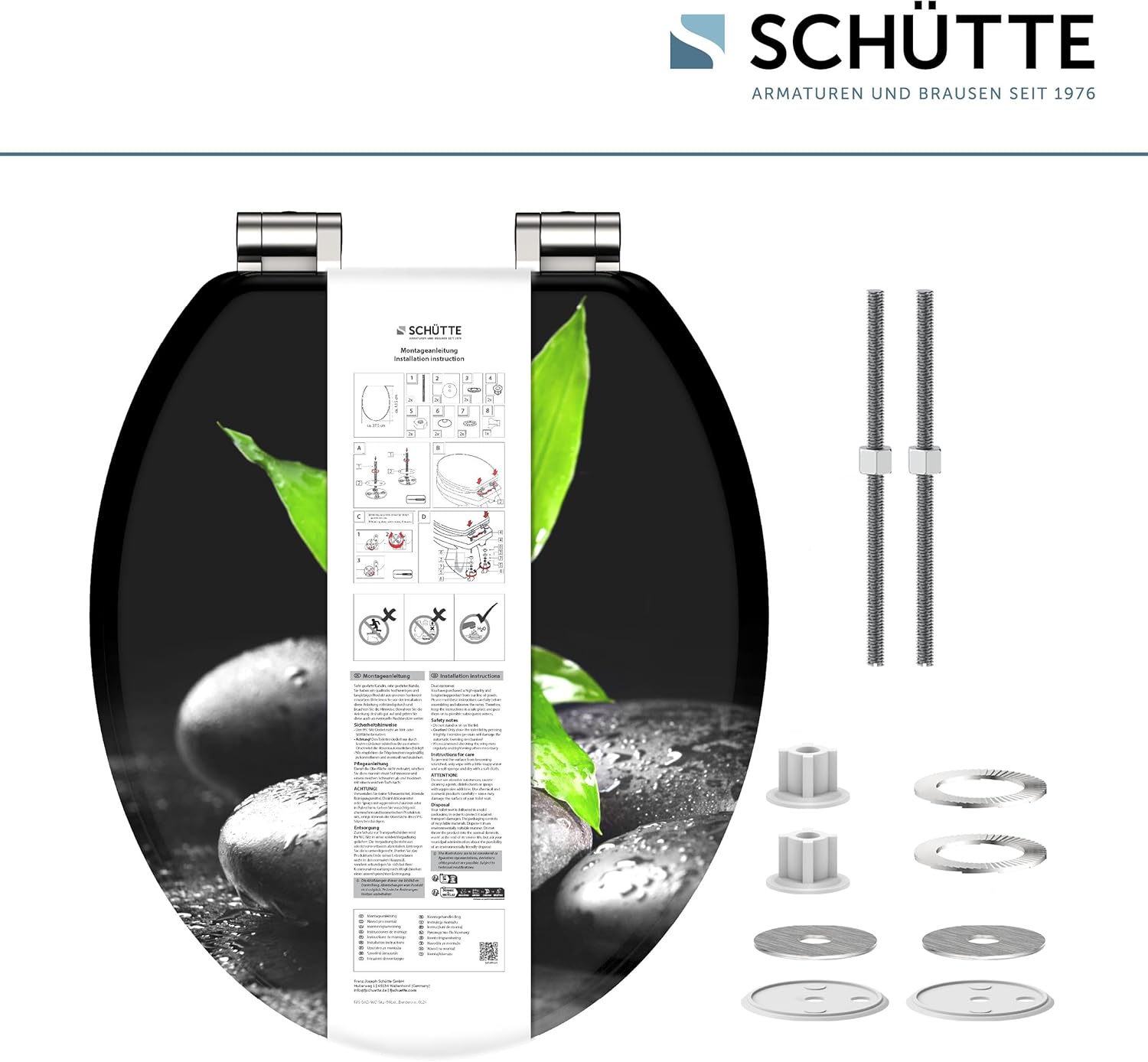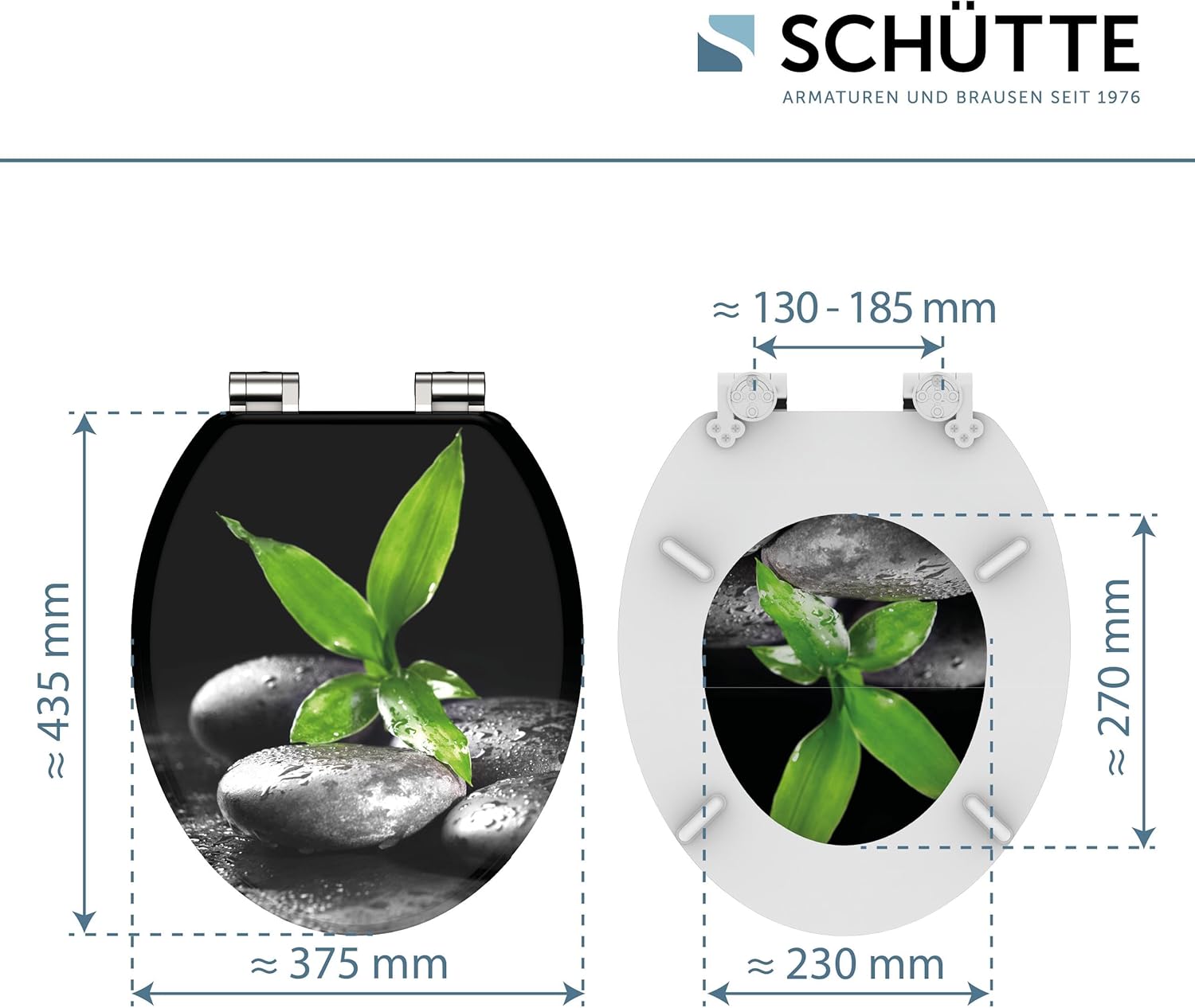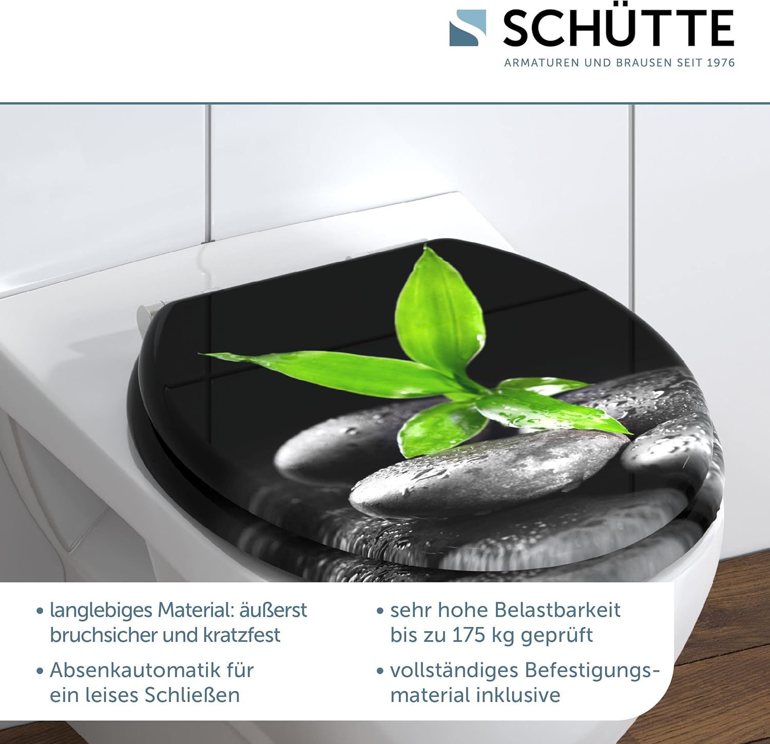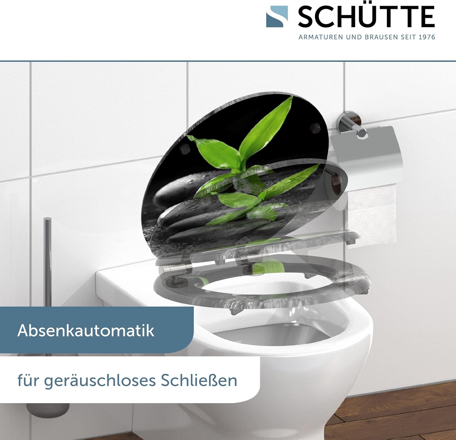 SCHÜTTE Тоалетна чиния от тъмен бамбук с механизъм за плавно затваряне, Тоалетна чиния с капак, Дървен капак с мотив (Максимално натоварване на тоалетната чиния: 175 кг), Дърво