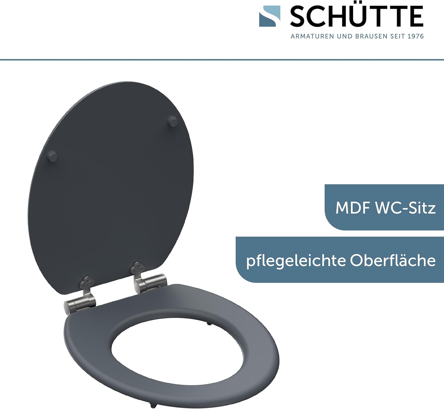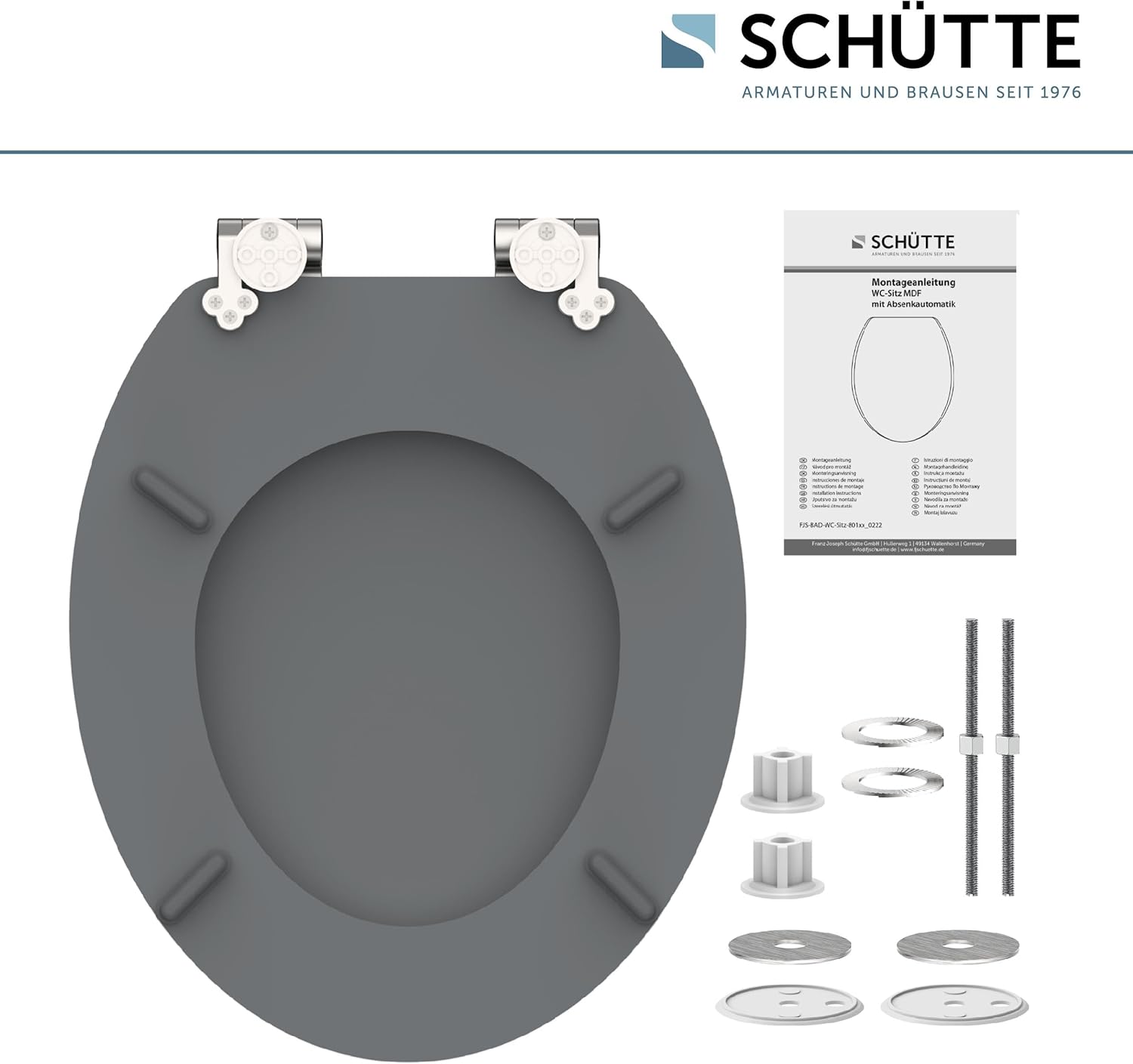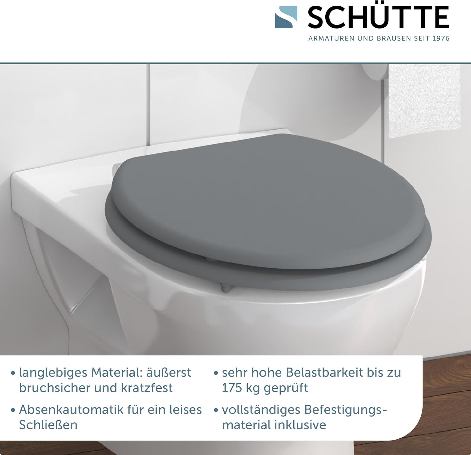 SCHÜTTE Тоалетна чиния Spirit Gray с механизъм за плавно затваряне, Тоалетна чиния с капак, Дървена сърцевина (Максимално натоварване на тоалетната чиния: 150 кг), Сива