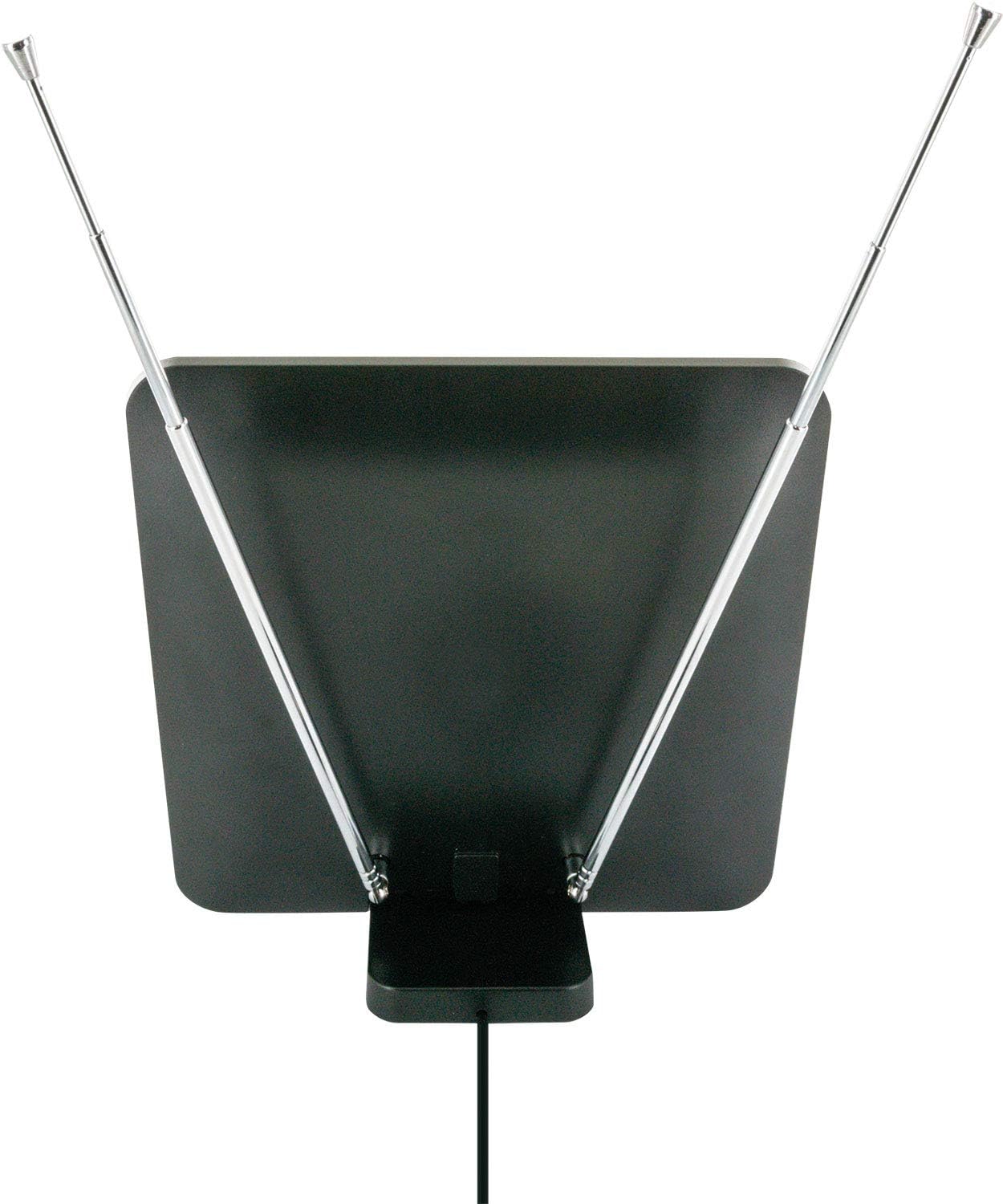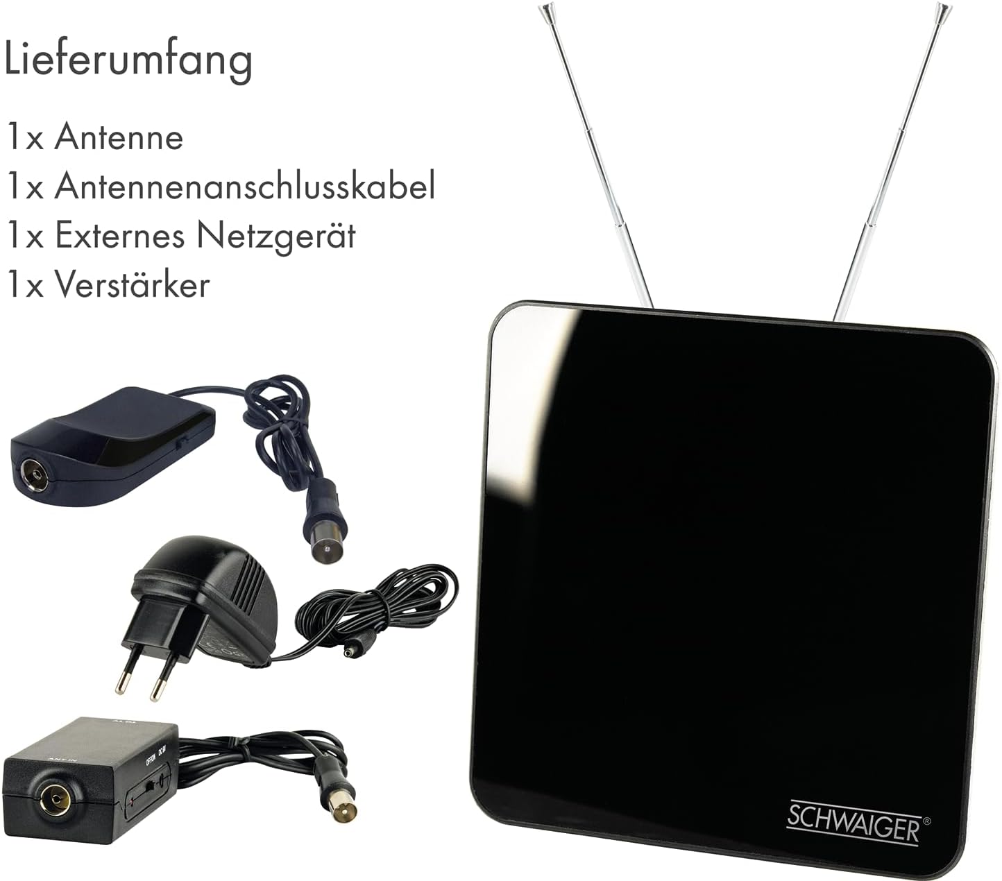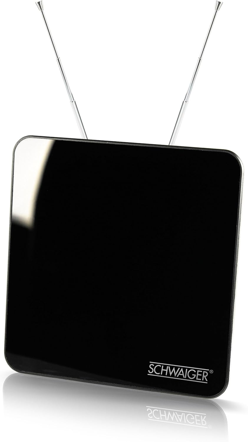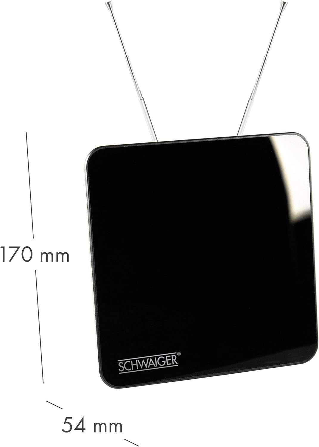 SCHWAIGER 720372 DVB-T2 Вътрешна антена Активна с усилвател DAB+ DVB-T Телевизионна антена LTE Cut Filter Прием Цифрова телевизия Телескопични пръти със стойка Черна