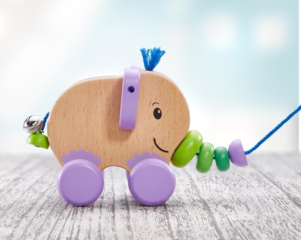 Това забавно слонче за дърпане с подвижни уши, цветен хобот и малка камбанка мигновено печели детските сърца и насърчава малчуганите да изследват света заедно. Разходките с този многофункционален мобилен спътник игриво разширяват обхвата на активност на малкото дете.
