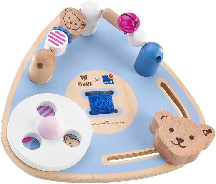 Четири игрални станции очакват малчуганите на този мобилен диск с дейности! Благодарение на лесно закрепващата се велкро закопчалка, той може да се прикрепи към кошара, кошара за игра или дори количка, осигурявайки стимулиращи игрови преживявания, където и да отидете. Освен това, той насърчава ранните двигателни умения на детето.