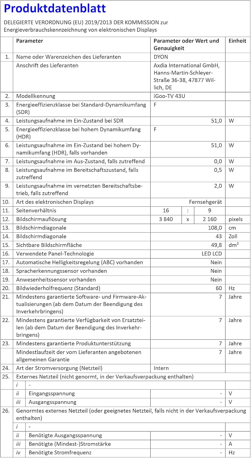 Серия смарт телевизори DYON (Google TV (4K UHD), 43 инча)