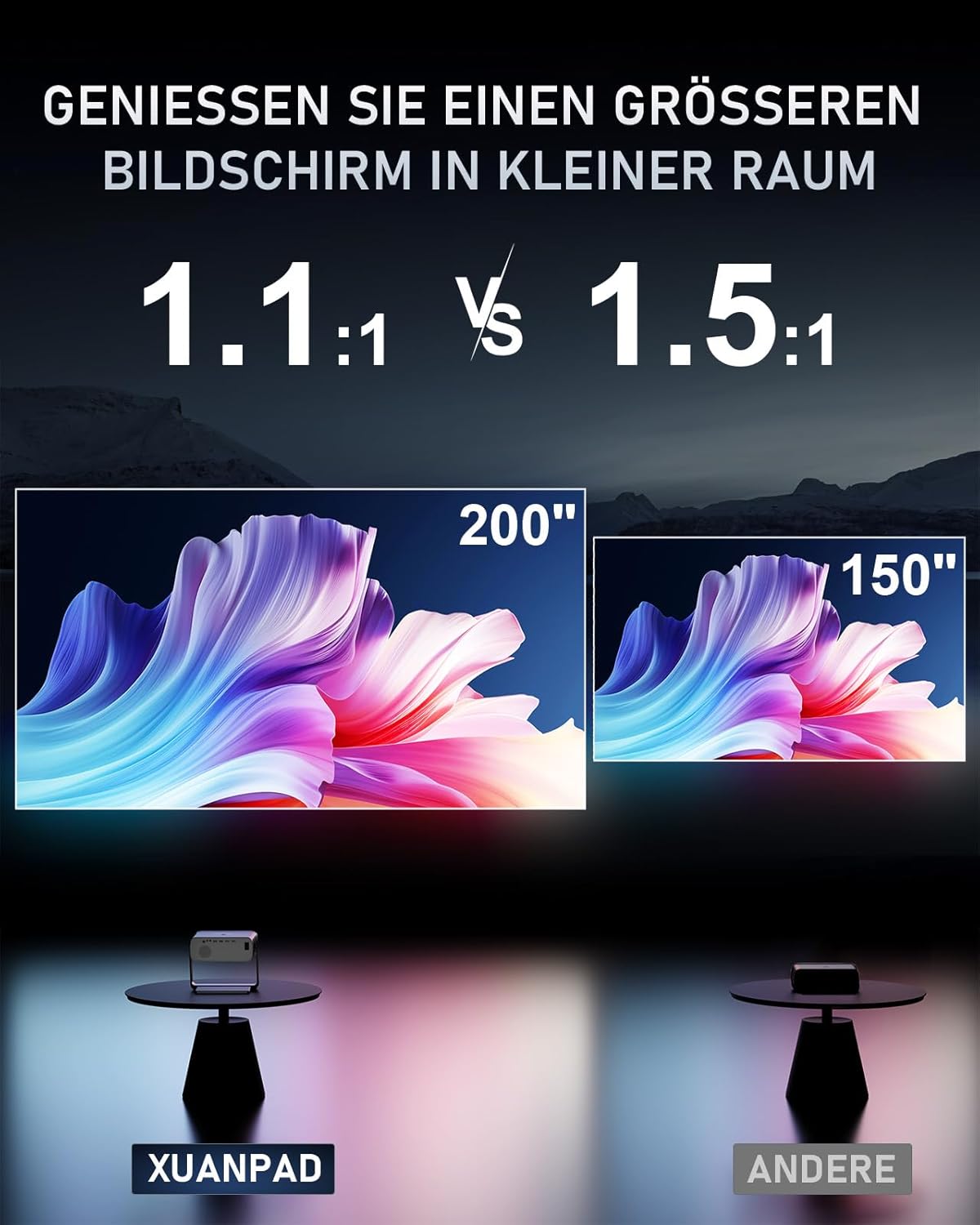 • WiFi 6 и Bluetooth 5.2: Изживейте светкавично бързо стриймване с WiFi 6 - свържете се за секунди! Нашият проектор с двуканален Bluetooth 5.2 позволява безпроблемна безжична връзка с високоговорители или слушалки за завладяващ съраунд звук. В сравнение с традиционните проектори с вентилатор, нашата иновативна технология за охлаждане намалява работния шум с 40% - като същевременно подобрява качеството на звука за истинско кинематографично изживяване.