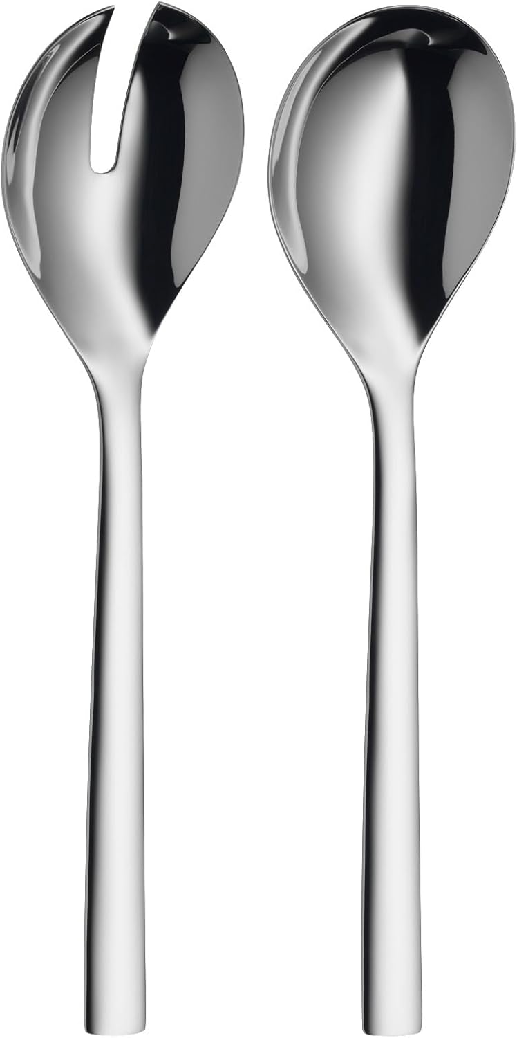 Сервиращи кутии за салата WMF Nuova 30 см, големи, с вилица за салата и лъжица за сервиране, полирана неръждаема стомана Cromargan, подходящи за съдомиялна машина