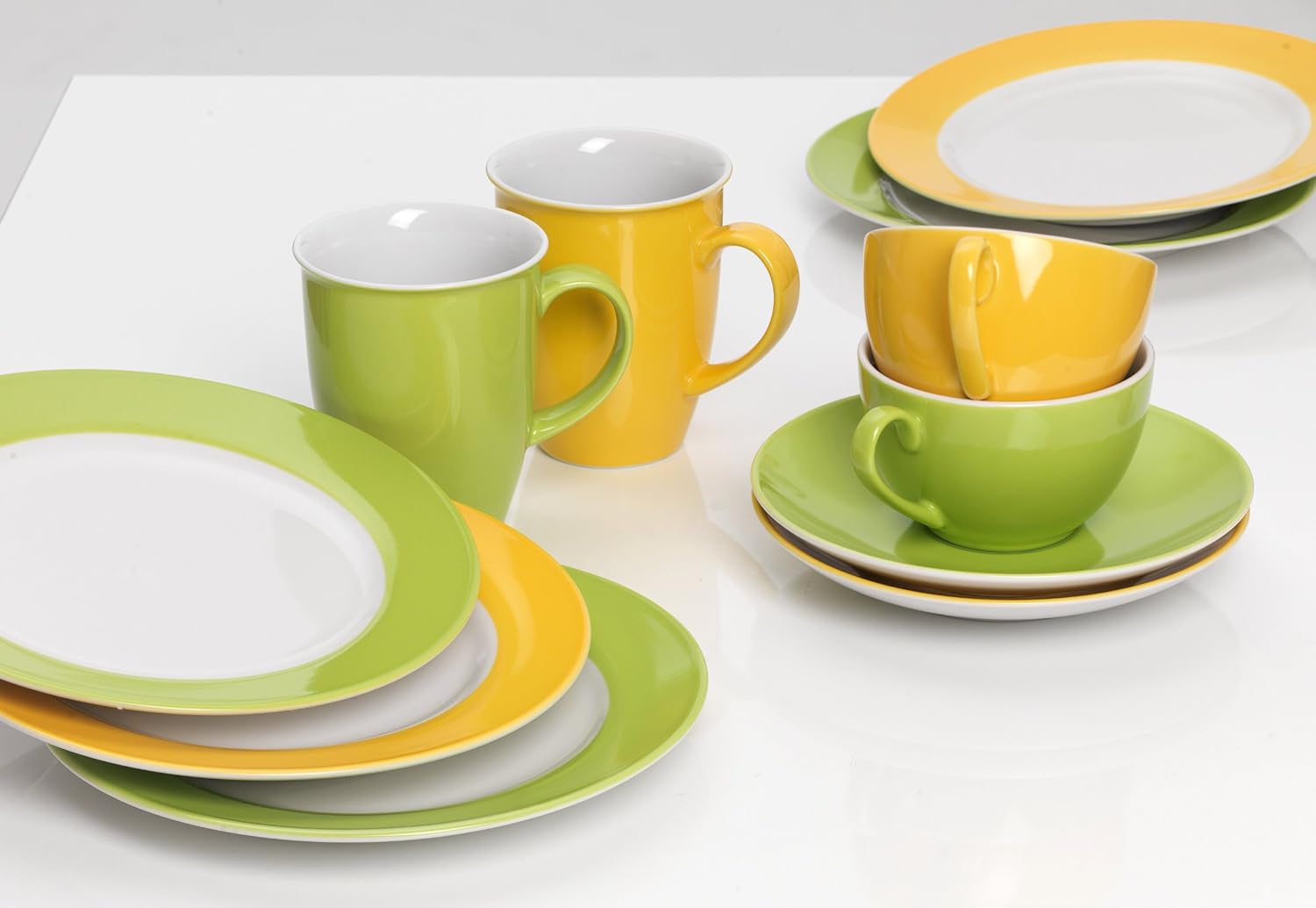 Слънчево жълто и наситено червено са истински тласкач на настроението, гарантирано ще повдигнат духа ви. Комбинацията от фин основен цвят с модерни, ярко оцветени прибори за хранене също гарантира страхотни, живи акценти.