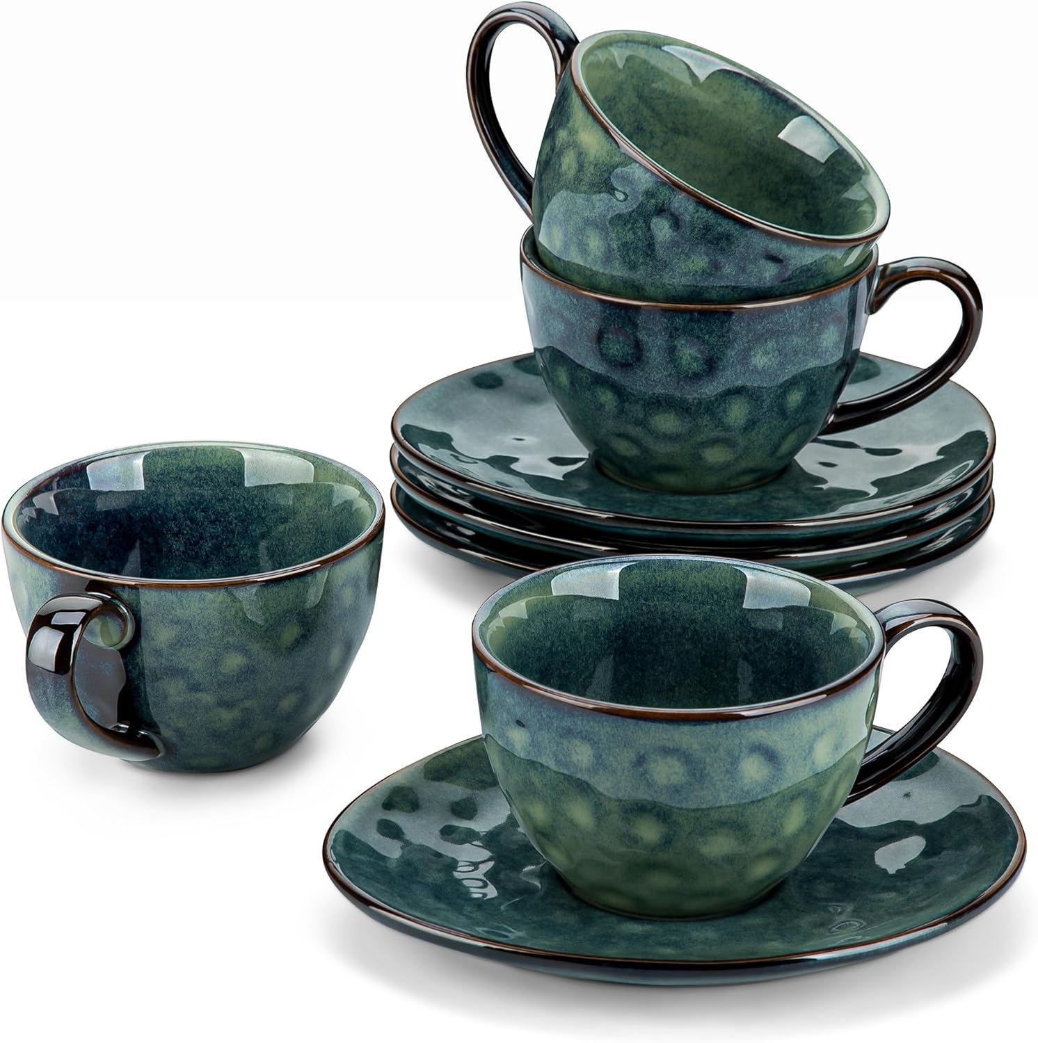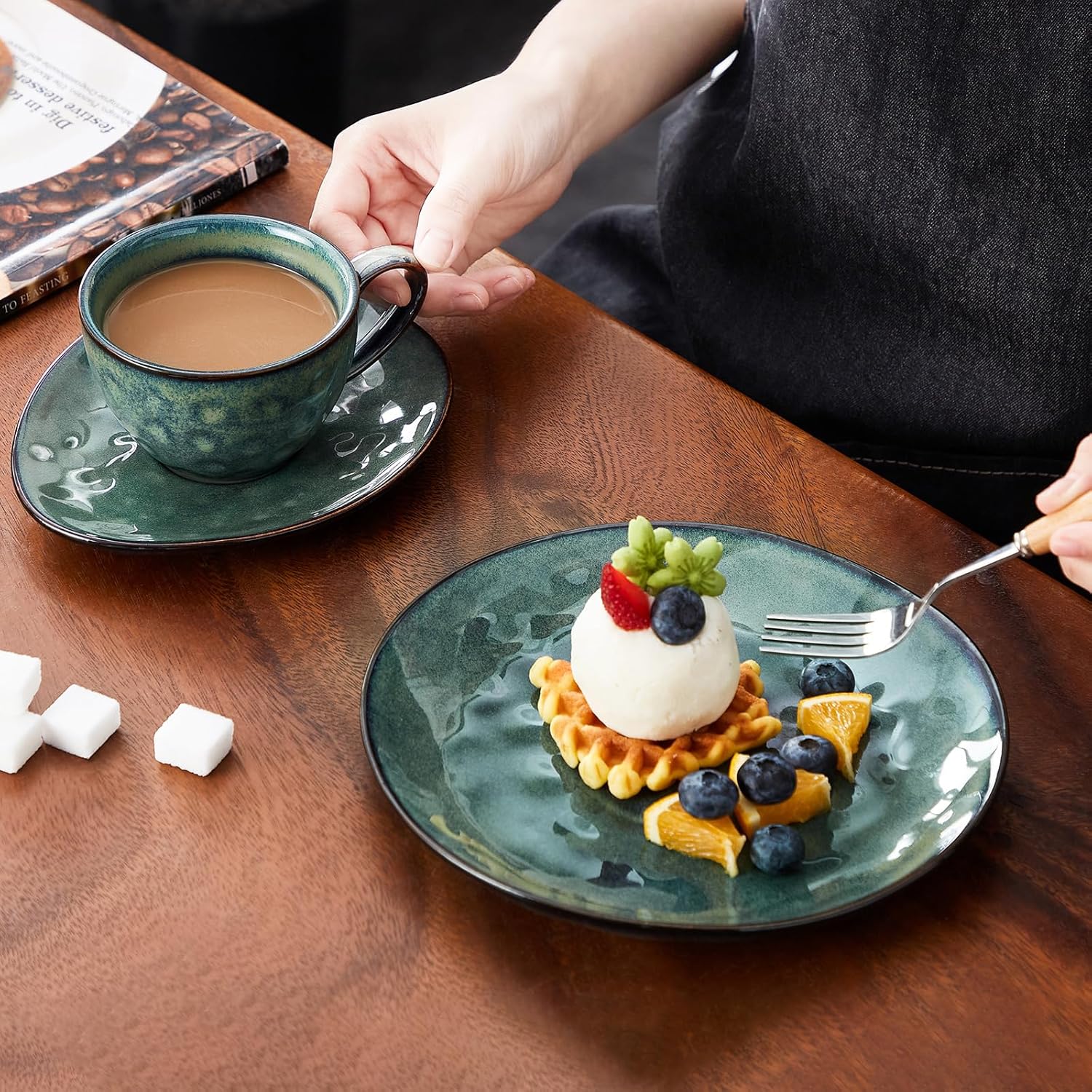 • 【Пълни колекции】12-частов комплект за кафе, състоящ се от 4 чаши за кафе и 4 чинийки; благодарение на специалната глазура, цветовете се сливат красиво, показвайки майсторската изработка в най-голяма степен. Той не само ще направи вашата маса истински привличаща вниманието, но и ще добави нотка стилна елегантност.