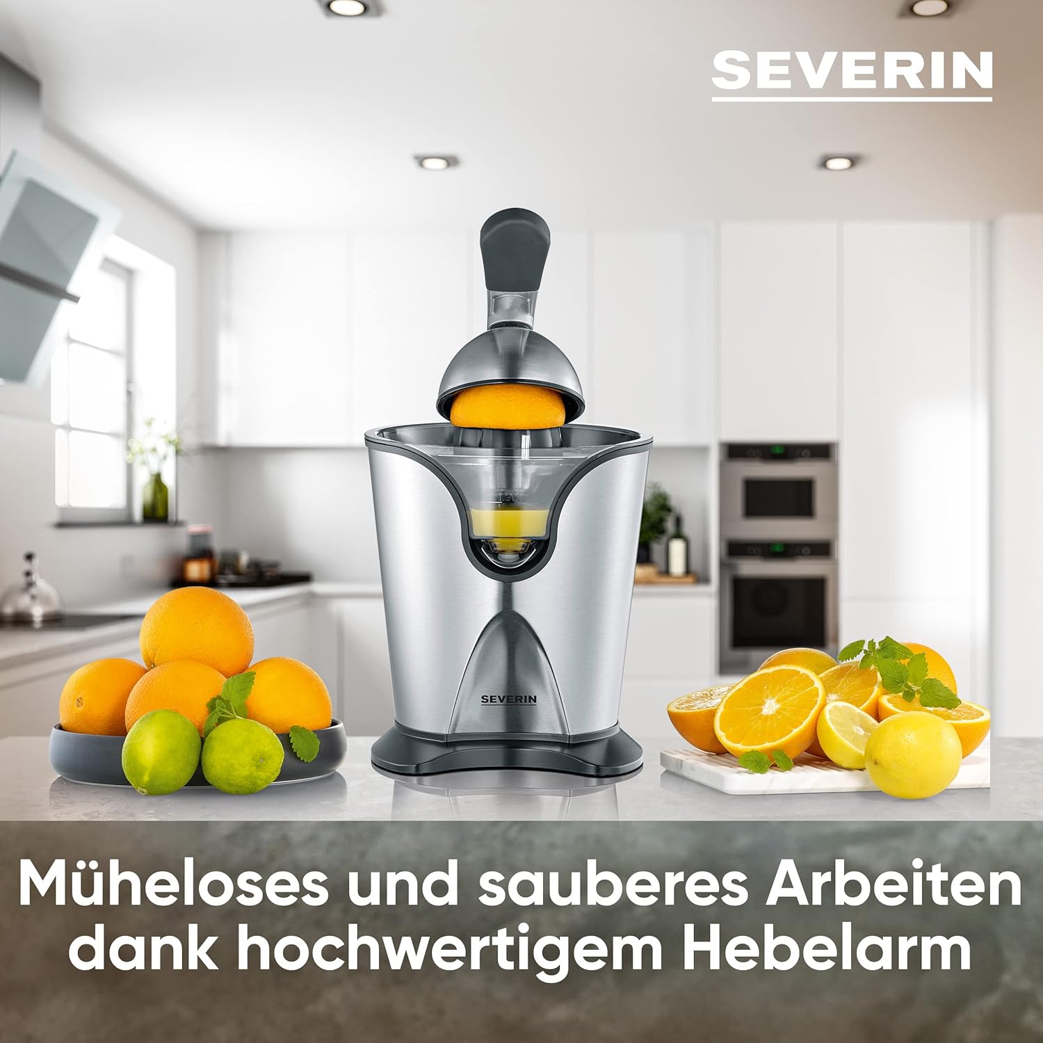 SEVERIN CP 3544 Сокоизстисквачка за цитруси с регулатор на пулпата, гарантирано висок добив на портокали, сокоизстисквачка за лимони, която може да се управлява с лост или ръчно, неръждаема стомана / черно