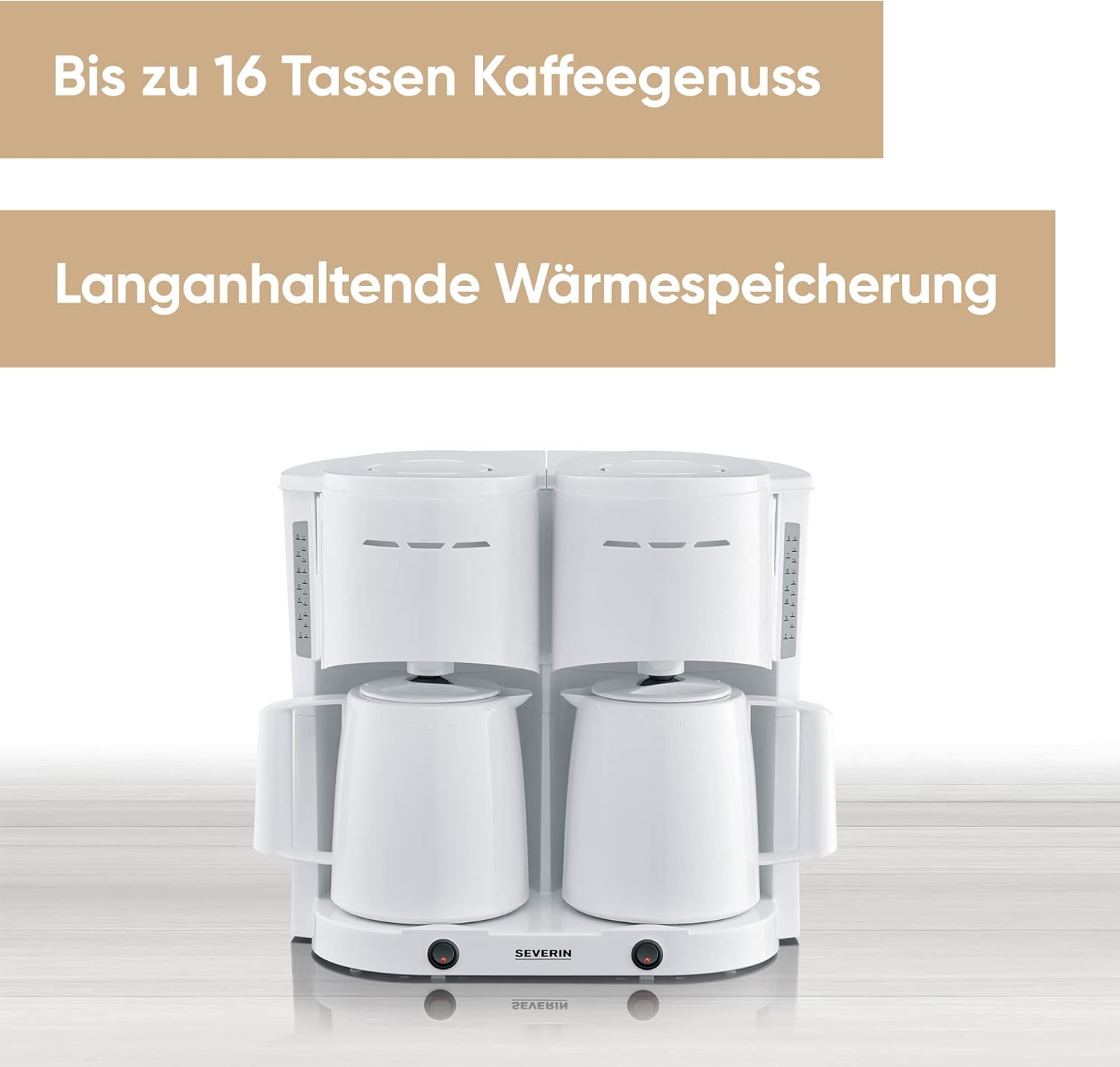 • Дълготрайна наслада от кафето - Кафемашината SEVERIN за до 16 чаши поддържа кафето топло за дълго време в термоканите без прокапване и осигурява дълготрайна наслада от кафето.