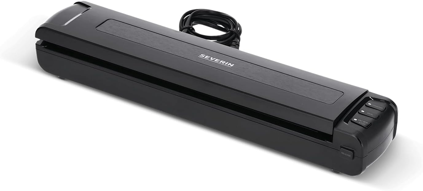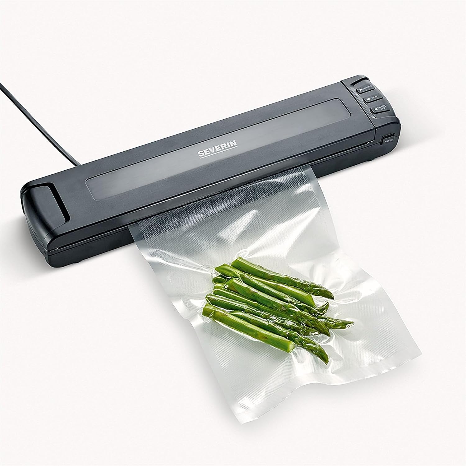 • Детайли: 1 x SEVERIN вакуумна опаковка за порциониране и херметично съхранение на храна, вакуумната опаковка включва 5 вакуумни торбички (20 x 30 см), приблизително 100 W, артикул № 3601