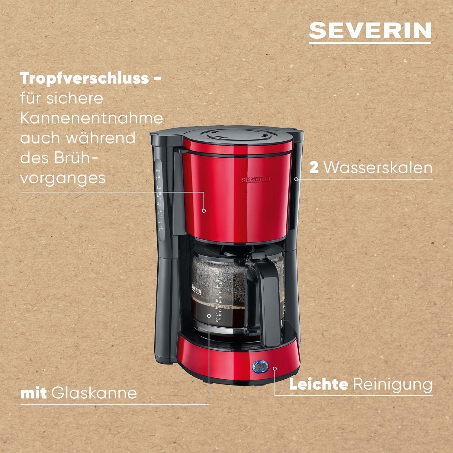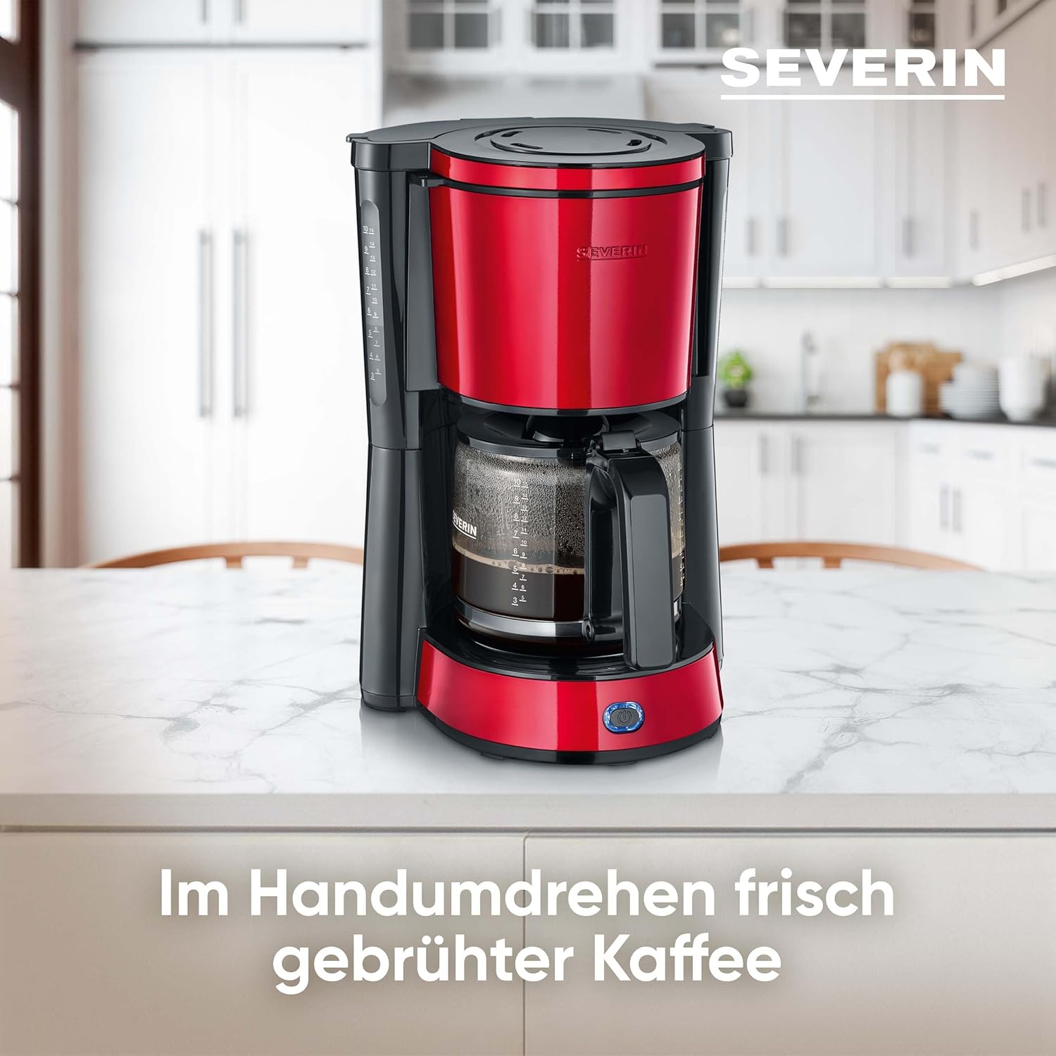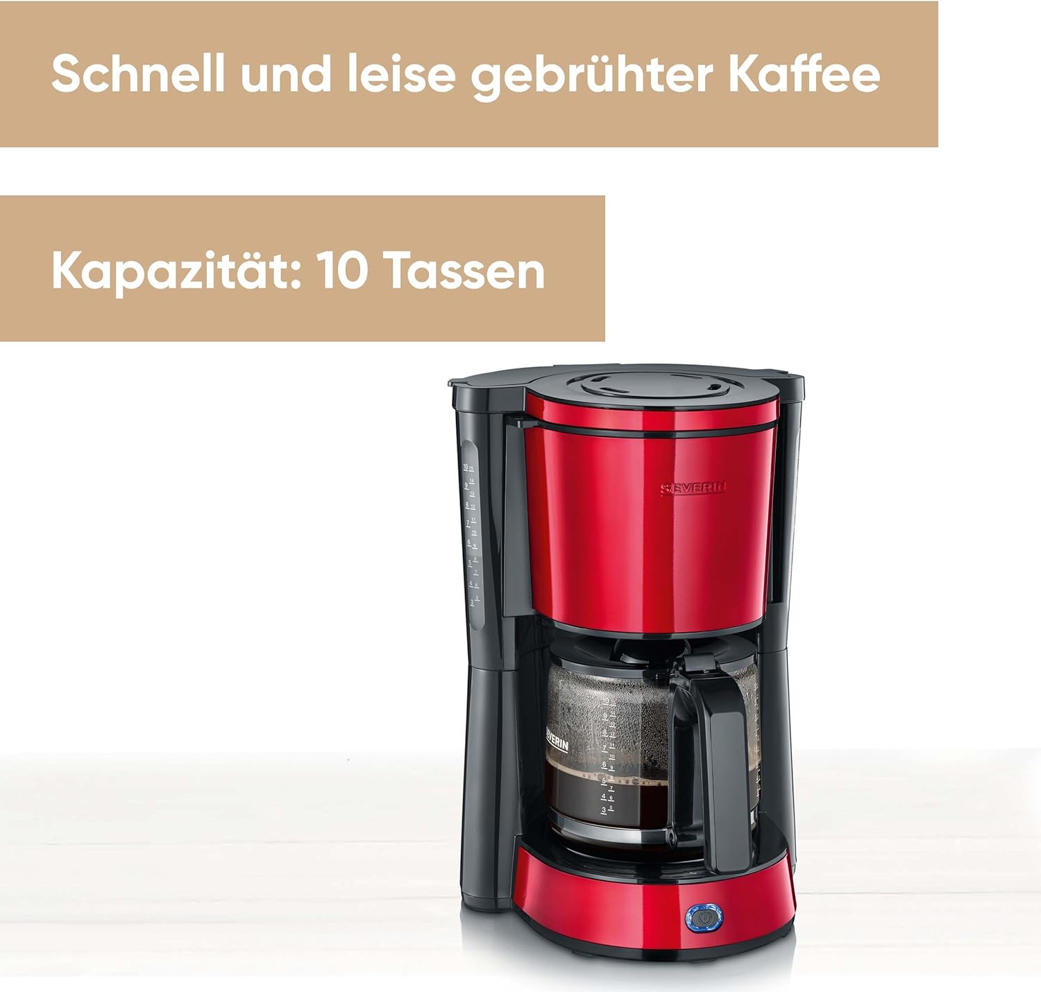 SEVERIN KA 4817 Кафе машина със стъклена кана, ароматно, бързо и тихо приготвяне на кафе с кафемашина за до 10 чаши, филтърна кафе машина, червена,